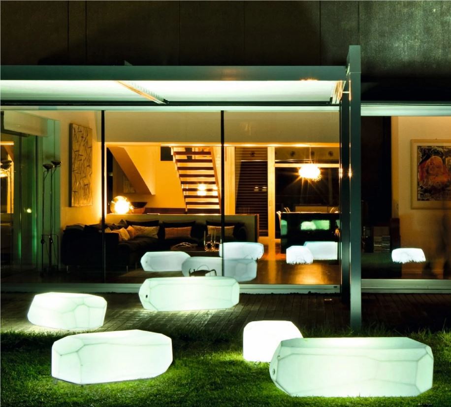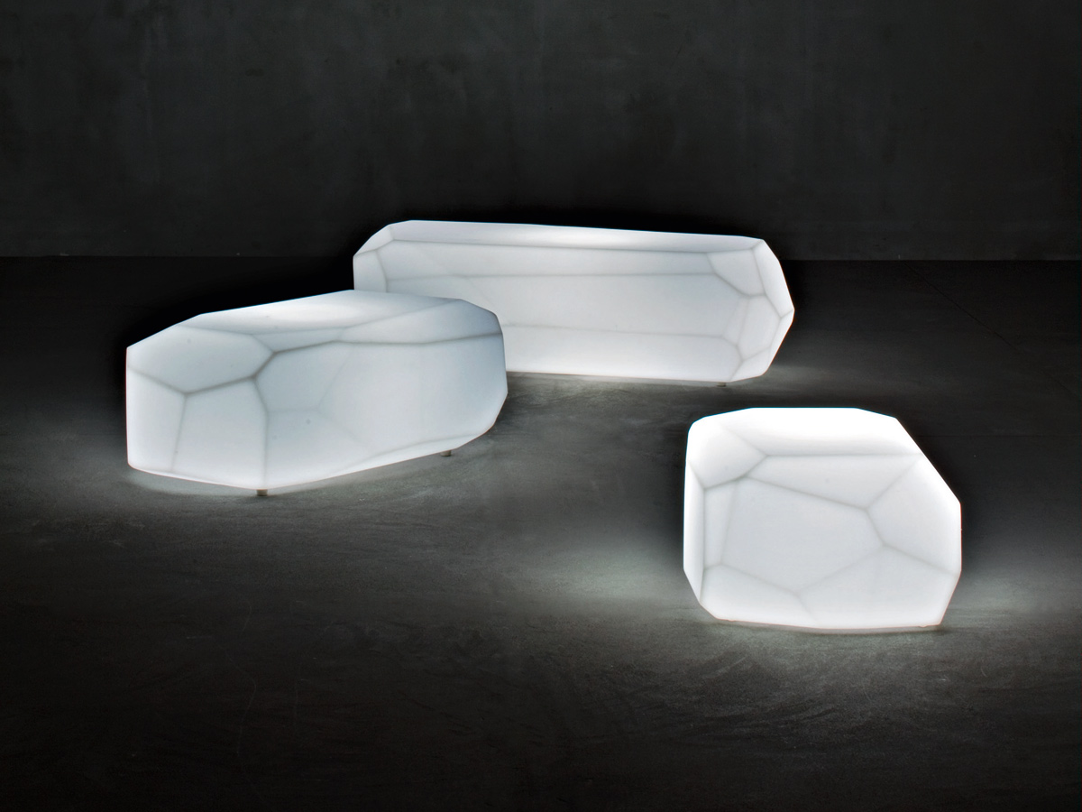 Die Meteor-Kollektion mit Innenbeleuchtung, die von Arik Levy für Serralunga entworfen wurde, präsentiert sich als ein außerirdisches Möbelstück, das auf die Erde gekommen ist, eine Neuinterpretation der typischen Natursteine, die die Landschaft schmücken, jetzt neu interpretiert und in unverwechselbare Elemente des häuslichen Lebens verwandelt und das städtische Umfeld. Meteor kann in seinen verschiedenen Versionen und Größen als informelle Gartenbank fungieren und Außenbereiche, einschließlich großer Gärten und Terrassen, bereichern.