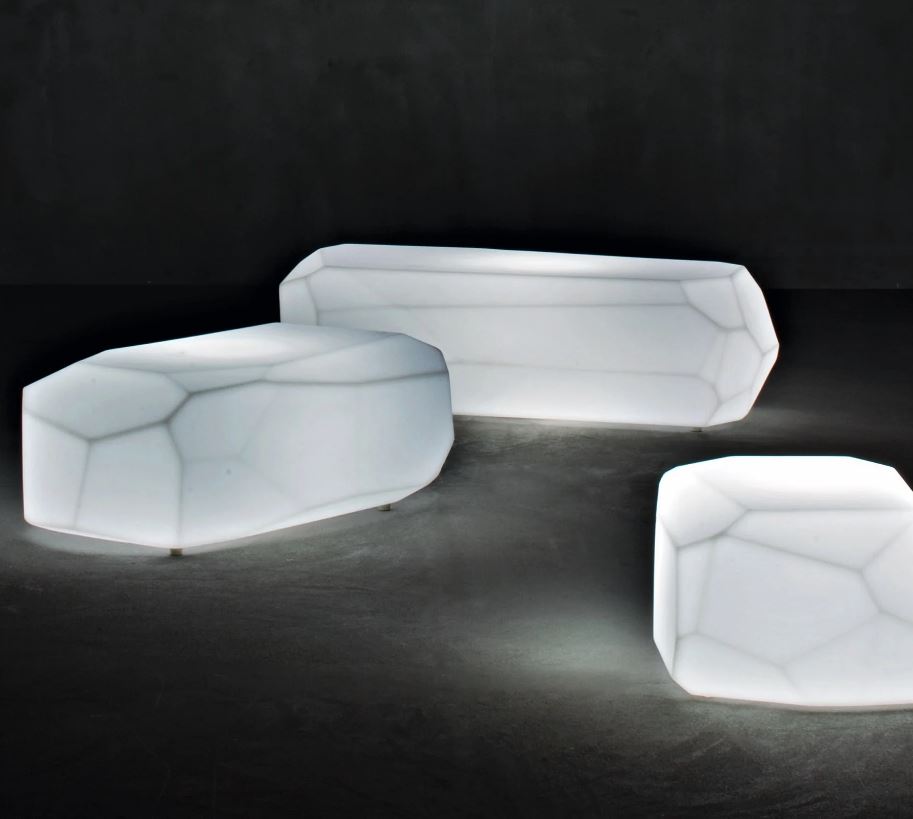 Die Meteor-Kollektion mit Innenbeleuchtung, die von Arik Levy für Serralunga entworfen wurde, präsentiert sich als ein fremdes Möbelstück, das auf der Erde angekommen ist, eine Neuinterpretation der typischen Natursteine, die die Landschaft schmücken, jetzt neu interpretiert und in unverwechselbare Elemente des häuslichen Lebens verwandelt und das städtische Umfeld. Meteor kann in seinen verschiedenen Versionen und Größen als informelle Gartenbank fungieren und Außenbereiche, einschließlich großer Gärten und Terrassen, bereichern.