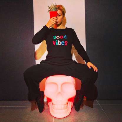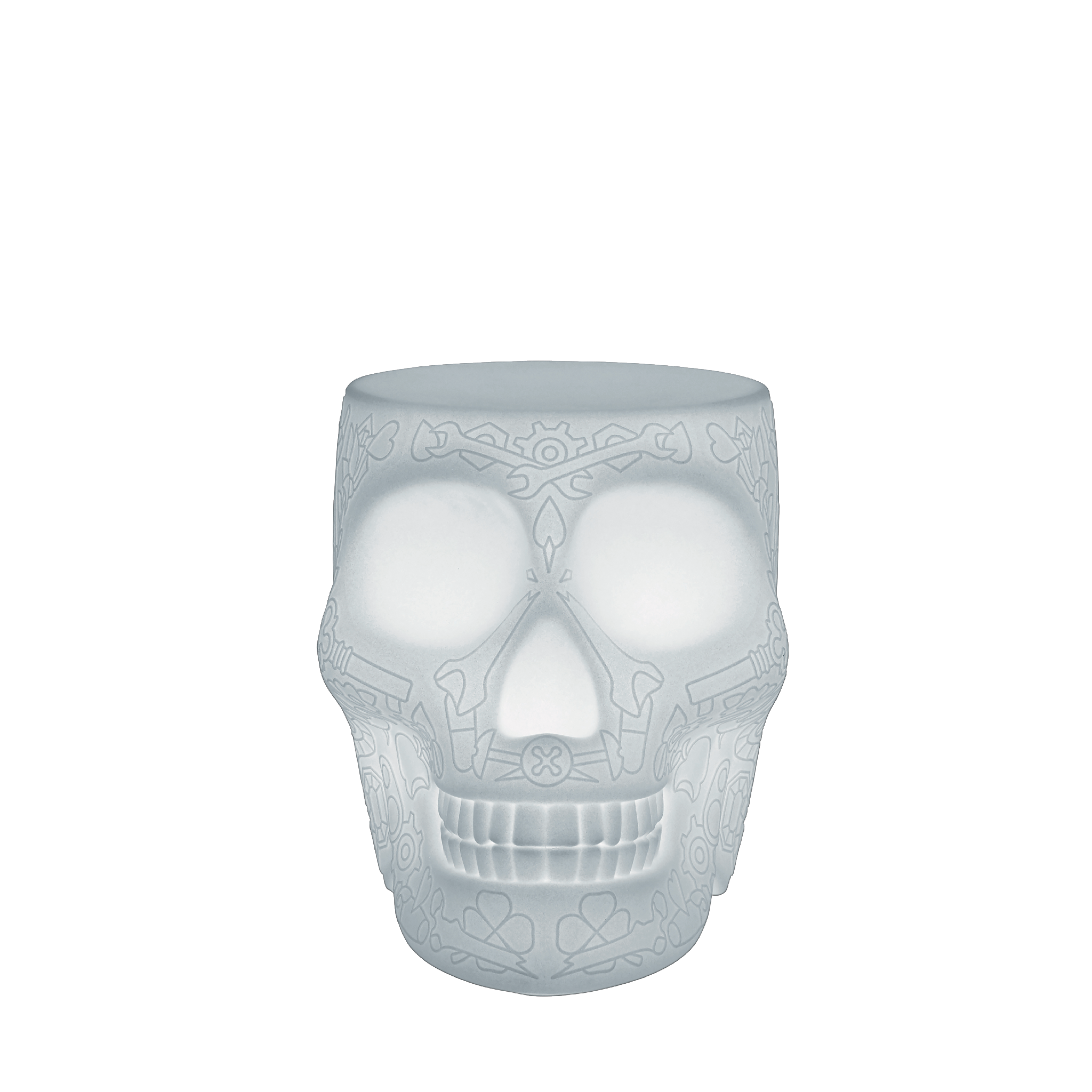 Mexico, entworfen von Studio Job, ist eine schädelförmige Lampe mit einem grafischen Motiv auf der Oberfläche, die sowohl als Hocker als auch als Beistelltisch fungiert. Mexiko erinnert an die traditionell bemalten Schädel des gleichnamigen Landes und erinnert auf skurrile Weise an die zyklische Natur unserer Präsenz auf der Erde, um den Tod auszutreiben und das Leben zu feiern. Geeignet für Loungebereiche, Esszimmer und Außenbereiche. Kabellos, mit wiederaufladbarem Akku, LED-Licht und 16 verschiedenen austauschbaren RGB-Farben, kann per Fernbedienung ferngesteuert eingestellt werden.