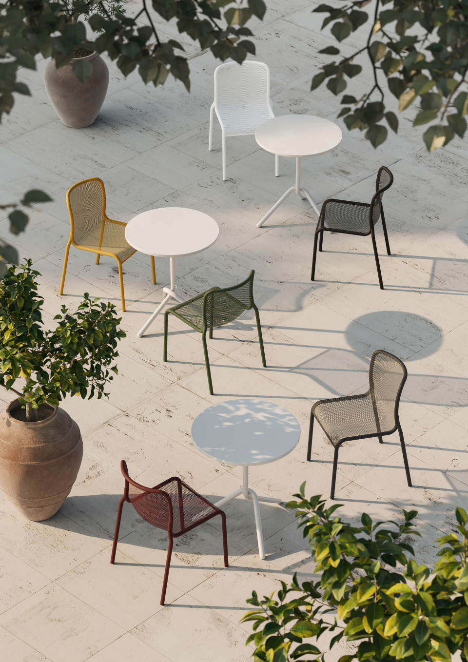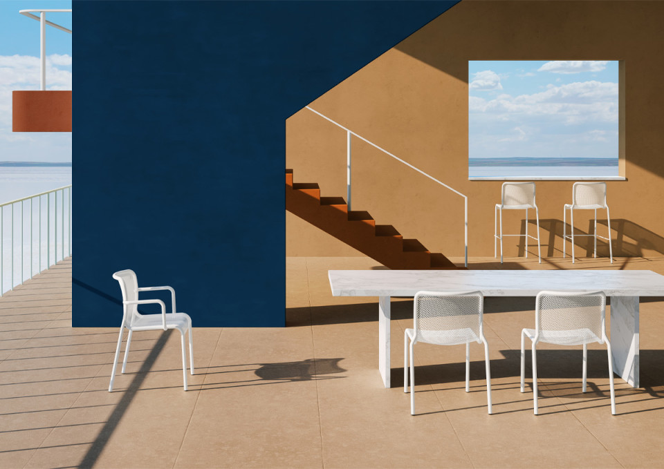 MOMO NET ist eine neue Sitzkollektion komplett aus lackiertem Metall, deren Realisierung eine intensive Studie gewidmet wurde, um die am besten geeignete Technologie für die Realisierung der subtilen technischen und ästhetischen Details zu finden, die das Ergebnis auszeichnen.
