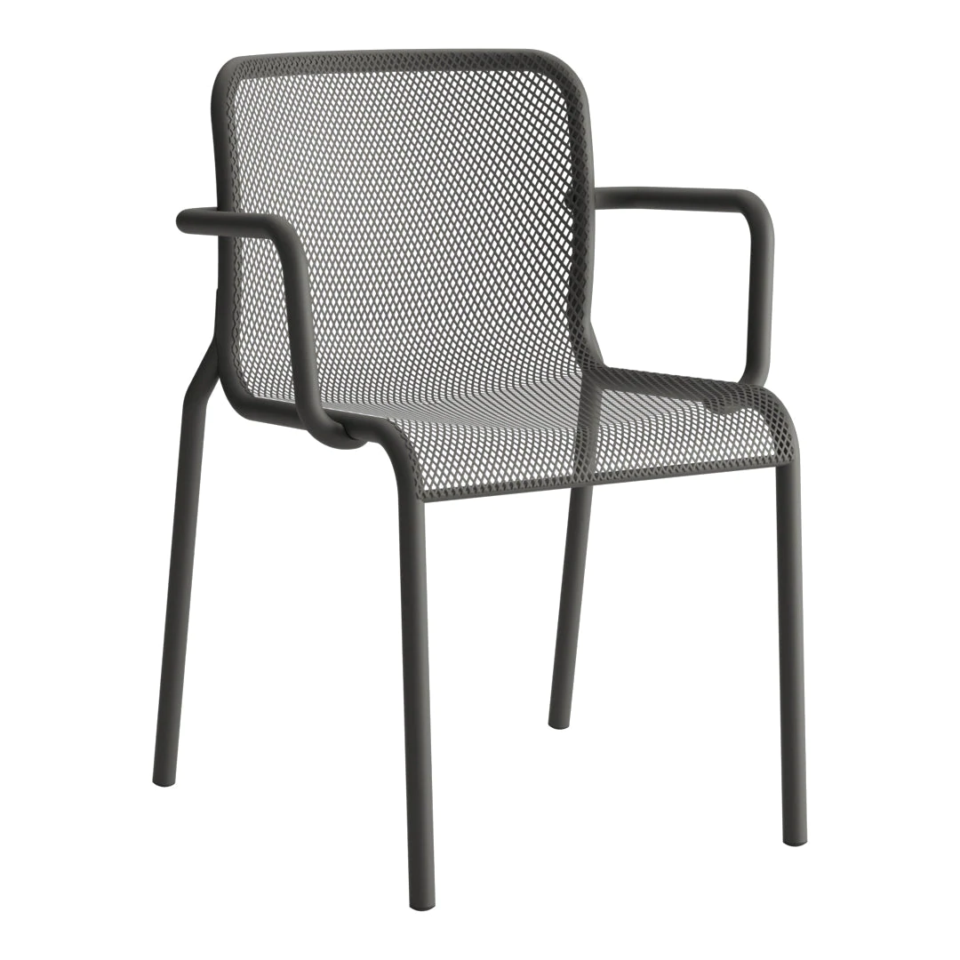 Ziel war es, ein Produkt zu erhalten, bei dem definierte Eigenschaften zusammentreffen: Robustheit, Langlebigkeit, Komfort, Stapelbarkeit, Ästhetik, technologische Innovation. Die Sitze bestehen aus Monocoque-Stahldrahtgeflecht, das mit einem ebenfalls aus Stahl bestehenden Rohrrahmen verschweißt ist, und werden in zwei Modellen angeboten: Stuhl oder Sessel mit Armlehnen.