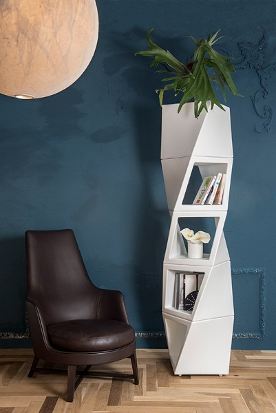 Dank seiner ungewöhnlichen Kurven und ineinandergreifenden Füße kann Twisty auf die gewünschte Anzahl von Modulen gestapelt werden. Bei Bedarf kann es zu Wendungen kommen: Hocker, Couchtisch, Hocker, Bücherregal, Vase, Eiskübel und mit speziellen Kits sogar eine Lampe, einzeln oder aus mehreren Modulen zusammengesetzt.