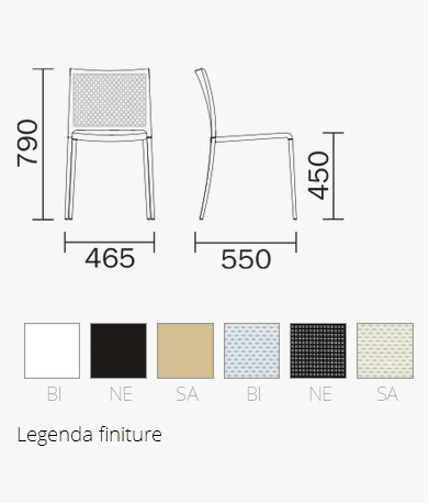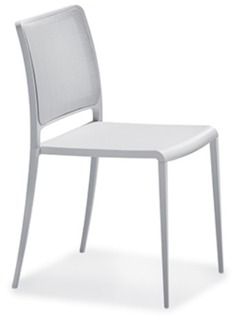Stapelbarer Stuhl mit Sitz aus Polypropylen und Rückenlehne aus Textilien. Aluminiumdruckgussrahmen lackiert, poliert oder satiniert.