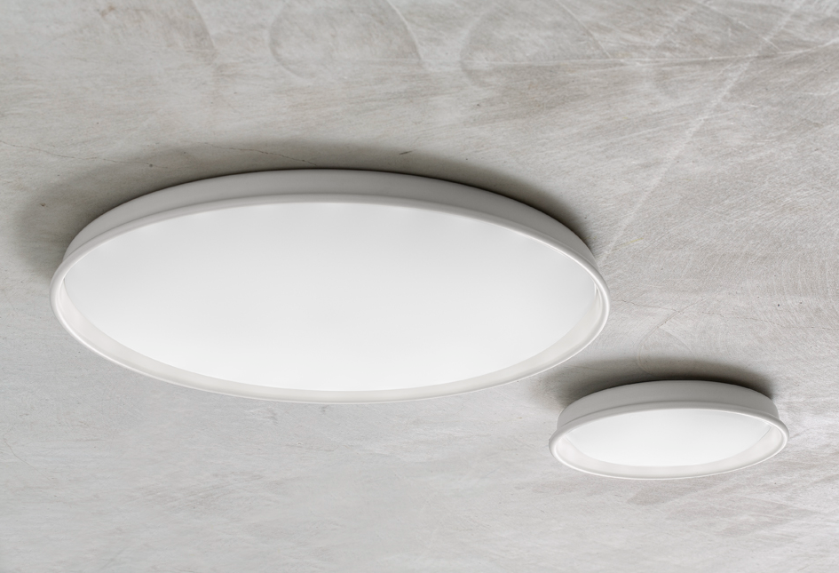 MYMOONS ist eine Serie, die aus drei Geräten unterschiedlicher Größe besteht und sowohl in der Pendelversion mit starrer Halterung als auch in der Deckenversion erhältlich ist.