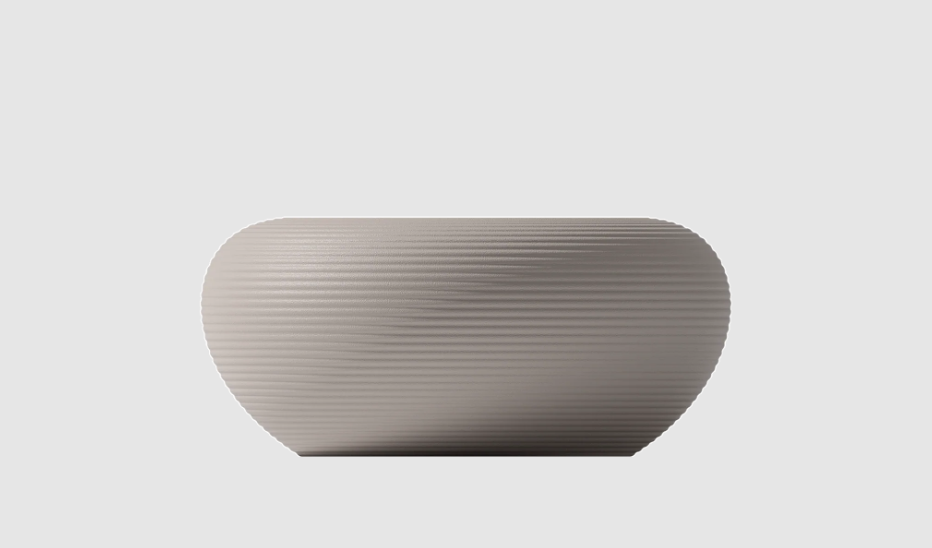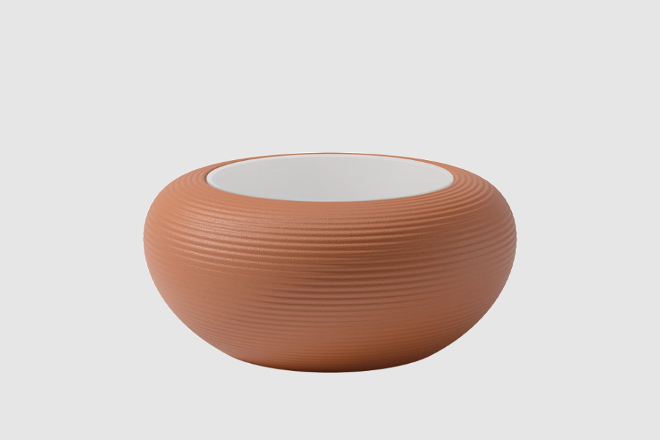 Seine weichen Formen und die Widerstandsfähigkeit der Materialien machen ihn perfekt für den Innen- und Außenbereich.
