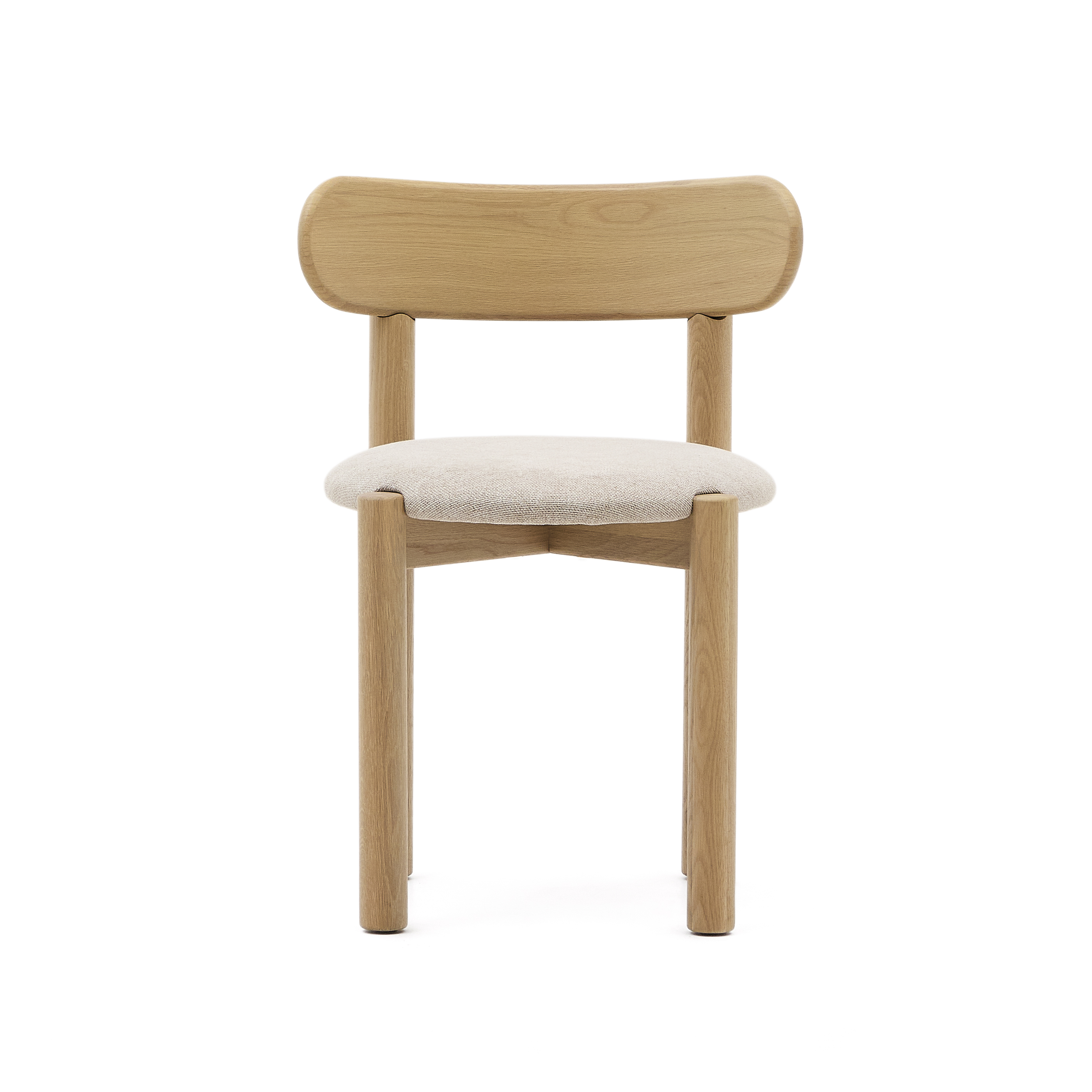 Nebai Stuhl aus beigem Chenille mit Gestell aus massiver Eiche, natürliches Finish FSC MIX C