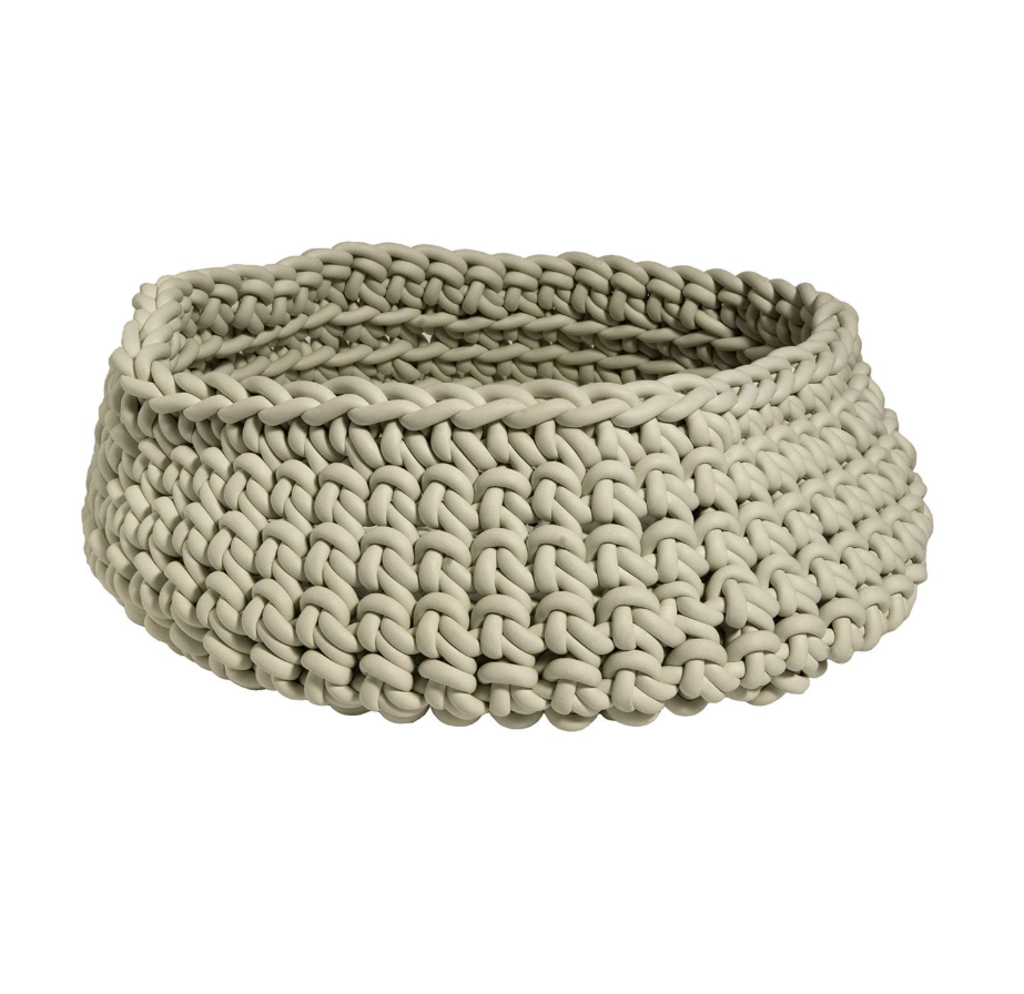 Der Classic Basket ist mit dünnem Neoprenfaden handgehäkelt, was ihm eine kompakte, aber weiche Struktur verleiht.