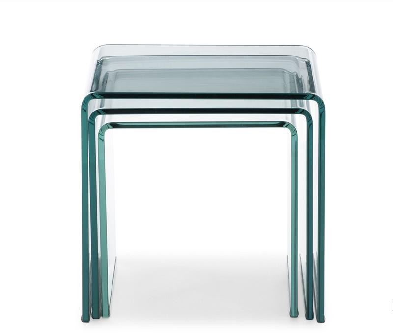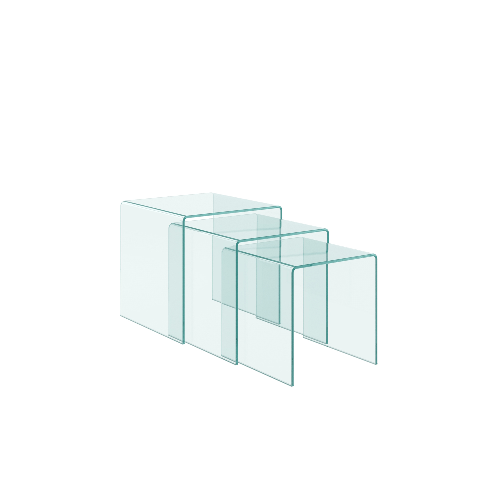 Mit dem Couchtisch Nest richtet die Schönheit von Glas ein elegantes Zuhause geschmackvoll ein und spiegelt die Designtraditionen des alten China wider. Antike Couchtische erhalten ein modernes Makeover und passen zu einer Vielzahl von Einrichtungsstilen. Für Liebhaber des klassischen Stils verleiht Glas dem Raum einen Hauch von Klasse, der einladend und elegant ist. Auch in einem modernen Ambiente ist das gebogene Glas zeitlos und verleiht ihm einen einzigartigen Glanz. Der Couchtisch Nest ist die perfekte Lösung für alle, die jeden Winkel ihres Zuhauses optimal nutzen möchten. So haben Sie nicht nur einen Couchtisch, sondern drei Nest-Tische, die zusammengeklappt keinen Platz wegnehmen. Der Couchtisch Nest wurde platzoptimiert konzipiert, sodass seine Form es ihm ermöglicht, wenig Platz einzunehmen und gleichzeitig drei Ablageflächen zu bieten. Ein schönes und funktionales Möbelstück, perfekt für ein Wohnzimmer, Schlafzimmer oder Arbeitszimmer. Abmessungen: Kleiner Tisch: L.34 x T.34 x H.34 Mittlerer Tisch: L.38 T.38 H.38 Großer Tisch: L.42 x T.42 x H.42 Glasdicke: 12 mm