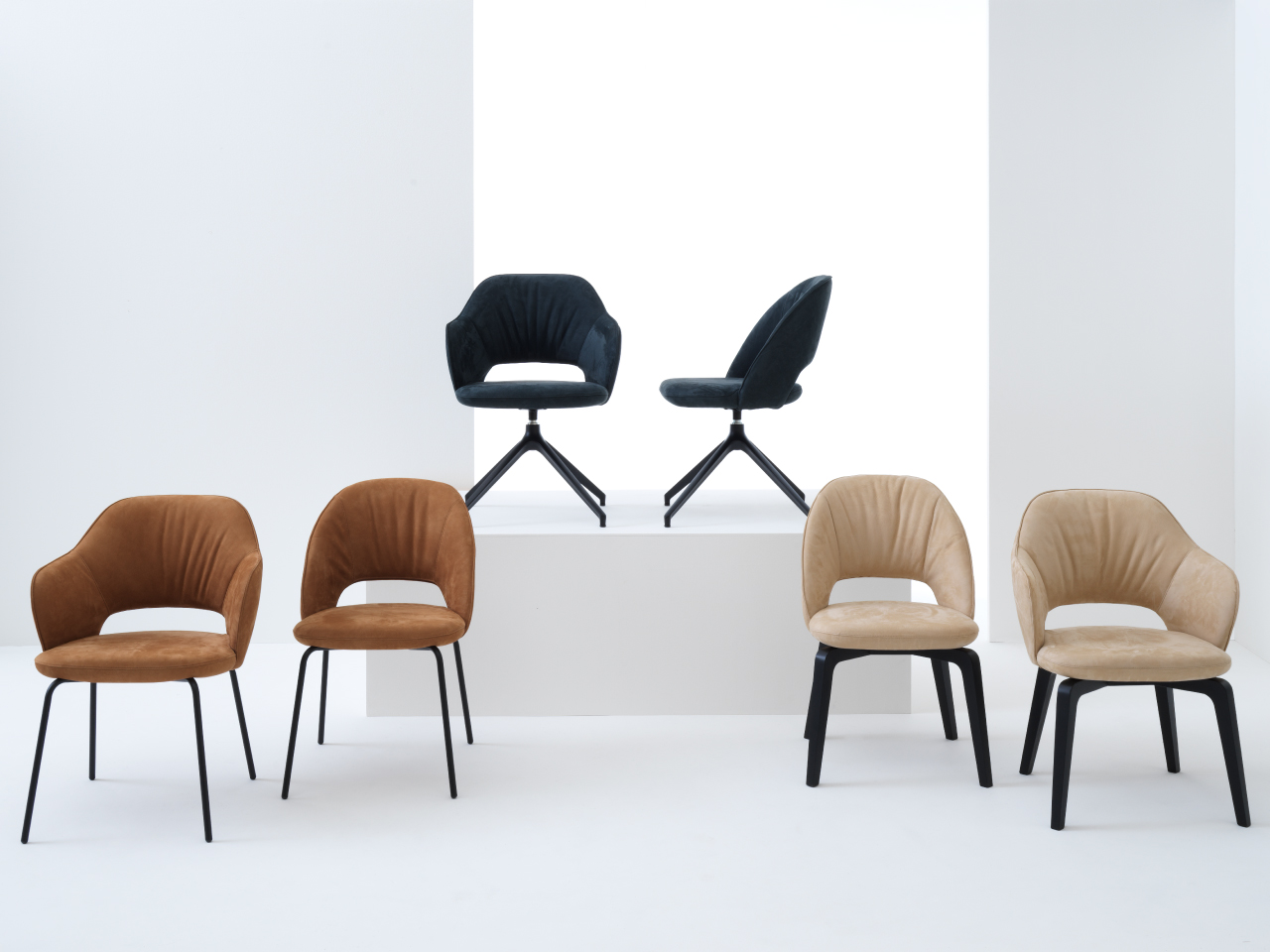 Klare Linien, raffinierte Details und schlichte Eleganz prägen die Identität von Noemi, einer Kollektion für Wohn-, Objekt- und Executive-Umgebungen. Ihr charakteristisches Merkmal ist die zart plissierte Rückenlehne, die der gesamten Struktur Rhythmus und optische Leichtigkeit verleiht. Noemi ist mit oder ohne Armlehnen erhältlich und vereint Komfort und Stil mit natürlicher Balance. Die Kollektion ist in drei funktionalen Varianten erhältlich: Noemi / Noemi Arm mit lackiertem Metallfuß und schlankem, modernem Profil; Noemi Plus / Noemi Arm Plus mit massivem Eschenholzrahmen und integriertem Rückholmechanismus für eine perfekt entspannte Haltung; Noemi Round / Noemi Plus Round mit rundem Drehfuß, ideal für Konferenzräume oder anspruchsvolle Lounges. In jeder Version behält Noemi seine elegante Persönlichkeit und bietet vielseitige Lösungen, sorgfältig gefertigt mit der schneiderischen Präzision, die die Designphilosophie von Julia Italia auszeichnet.