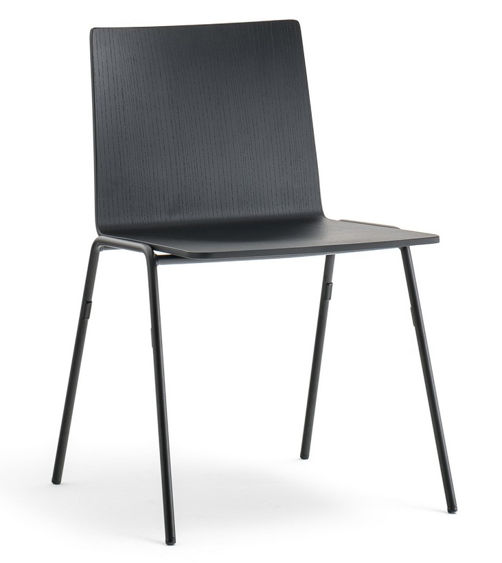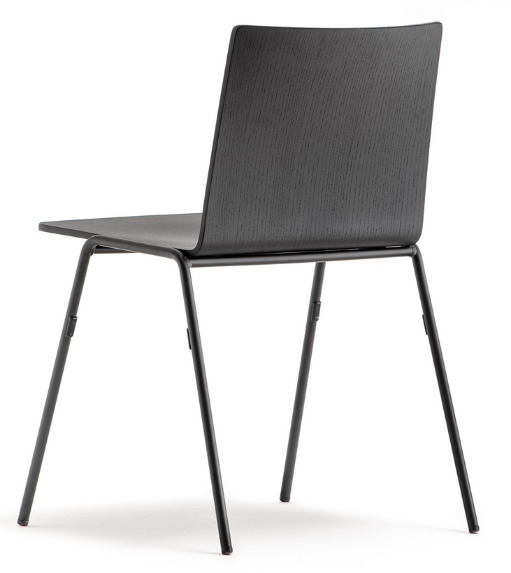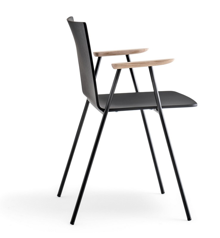 Das Modell 5711 hat einen 16 mm schwarz lackierten Stahlstangenrahmen und eine Aschesperrholzschale. Auch in der Version mit Armlehnen 5712 erhältlich.