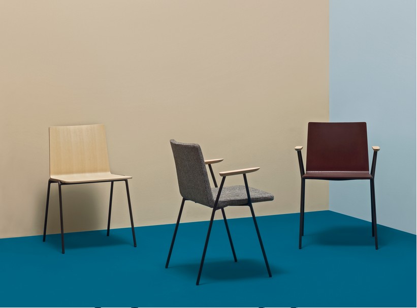 Osaka Metal ist eine Stuhlkollektion, die den funktionalistischen Ansatz der Kollektion bestätigt, da sie sich durch hervorragende Ergonomie und einen grafischen Effekt zunehmender Helligkeit auszeichnet. Das gerade Profil zeigt eine einladende Dreidimensionalität, die durch das taktile Wohlbefinden des Holzes vervollständigt wird.