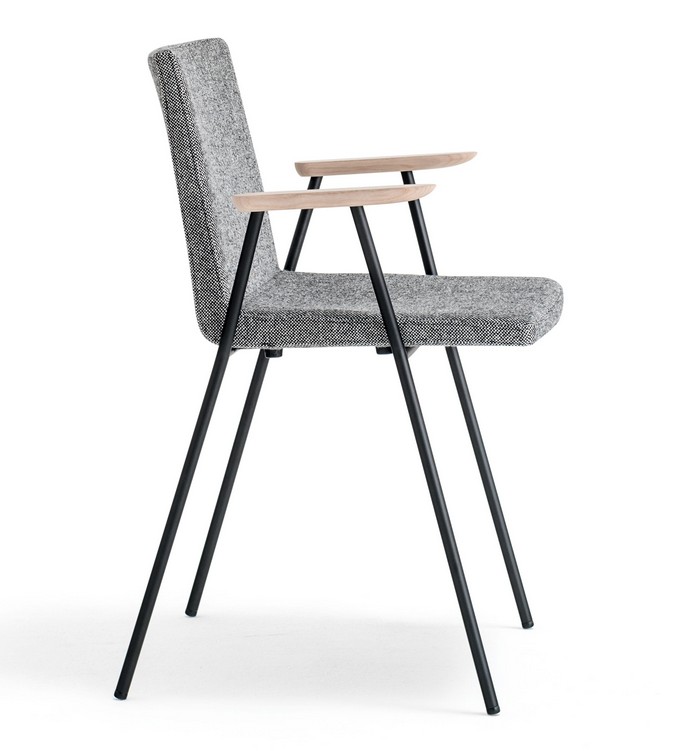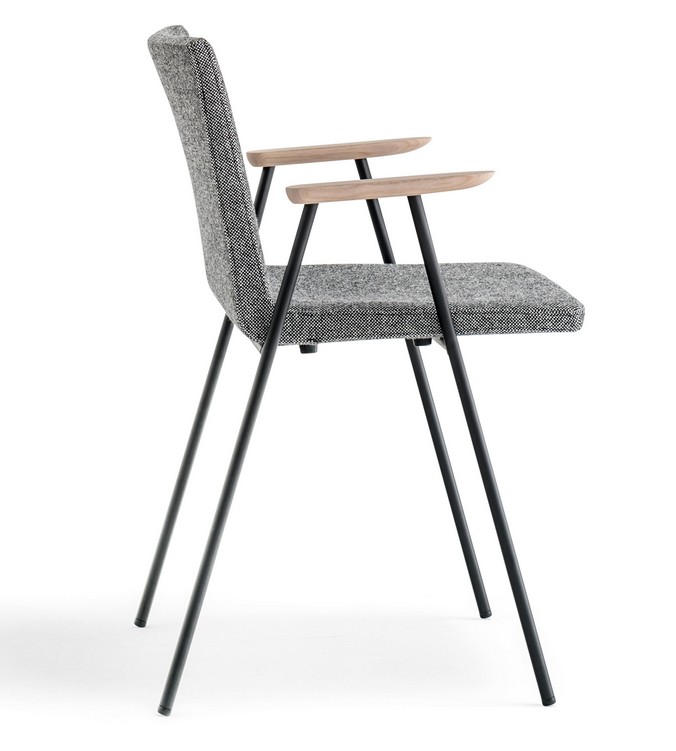 Das Modell 5721 hat einen 16 mm schwarz lackierten Stahlstangenrahmen und einen gepolsterten Körper. Auch in der Version mit Armlehnen erhältlich.