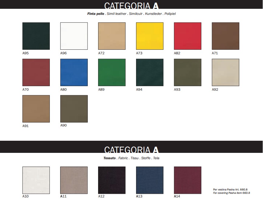 Stahl- und Eschensperrholz, Leder A95 - A96 - A72 - A73 - A82 - A71 - A70 - A80 - A89 - A94 - A93 - A92 - A91 - A90 oder Stoff A10 - A11 - A12 - A13 - 14