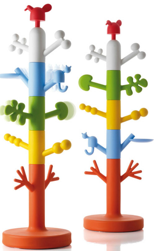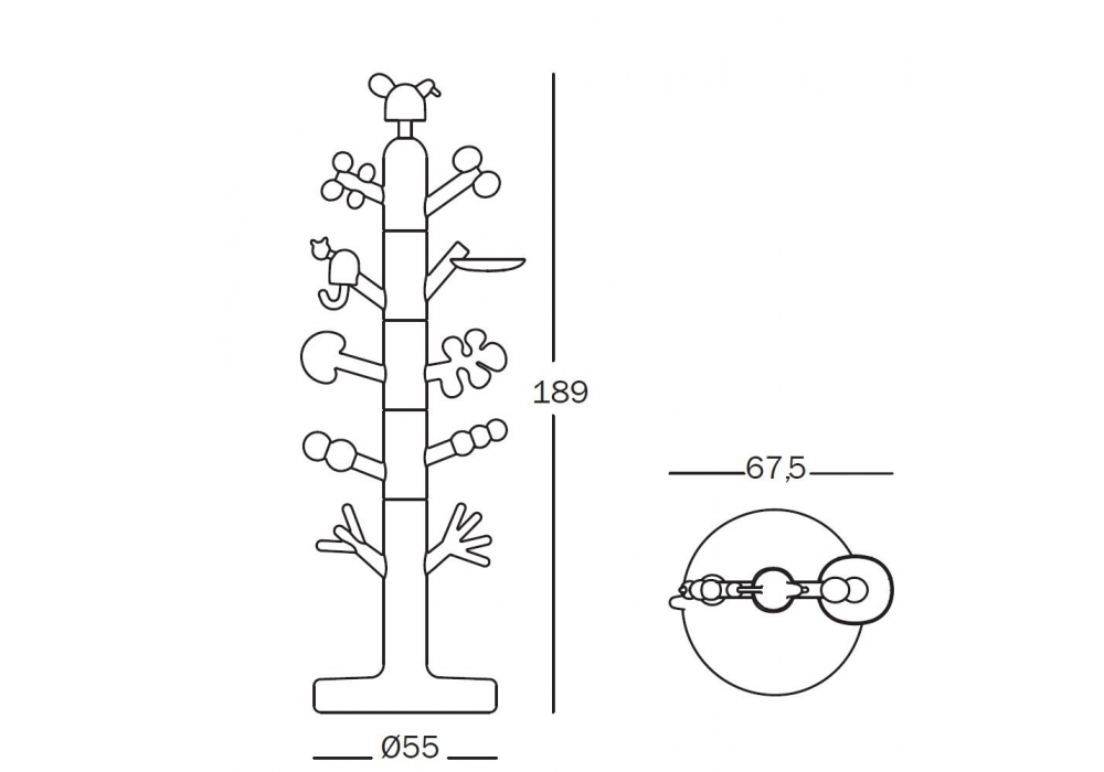Kleiderbügel aus Polyethylen. Ballast und Innenstruktur aus kaltverzinktem Stahl. Die Basis und die ersten beiden Elemente oben sind fest, während die drei Zwischenelemente austauschbar sind.