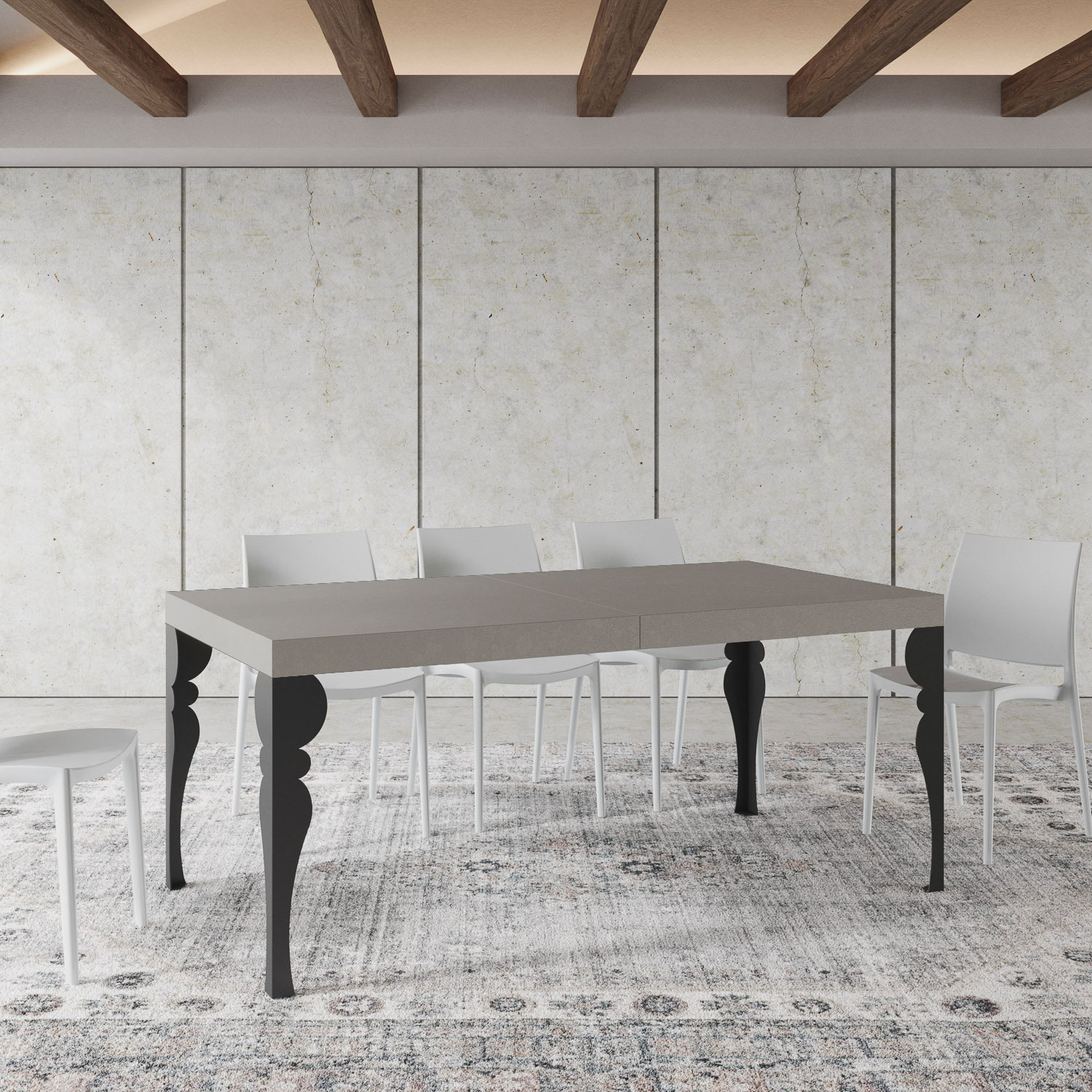 Ausziehtisch Paxon 180, aus modernem Design und extravagantem Stil, fügt sich perfekt in jeden Einrichtungskontext ein und ist die ideale Lösung sowohl für die Küche als auch für das Wohnzimmer, wo Sie Ihre Gäste immer stilvoll empfangen können. Der Ausziehtisch Paxon lässt sich schrittweise bis 284 cm ausziehen, mit Platz für bis 12 Personen. Melaminbeschichtete Spanplatten, Eisenbeine, die Haupttischplatte wird mit Folding-Bearbeitung gefertigt. Das Auszugssystem mit Aluminium-Teleskopschienen macht den Tisch auch im ausgezogenen Zustand stabil und robust, ohne dass zusätzliche Stützen erforderlich sind. Die Verlängerungen sind sofort einsatzbereit, da sie unter der Hauptplatte des Tisches untergebracht sind. Itamoby Produkt Made in Italy Maße: Im geschlossenen Zustand: B.180 T.90 H.77 cm Mit 1 Verlängerung im Einsatz: 232 cm Mit 2 Verlängerungen im Einsatz: 284 cm