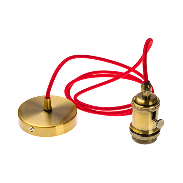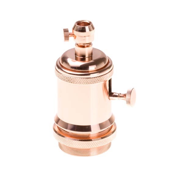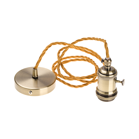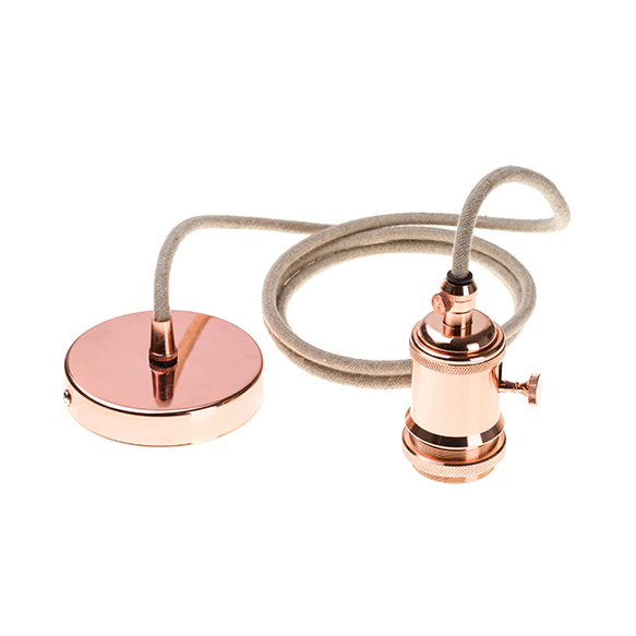 Kupfer Metallmaterial, Textilkabel mit Erde zwischen Rose und Lampenfassung.