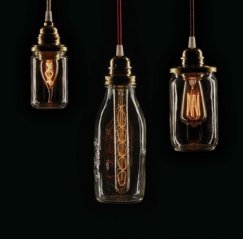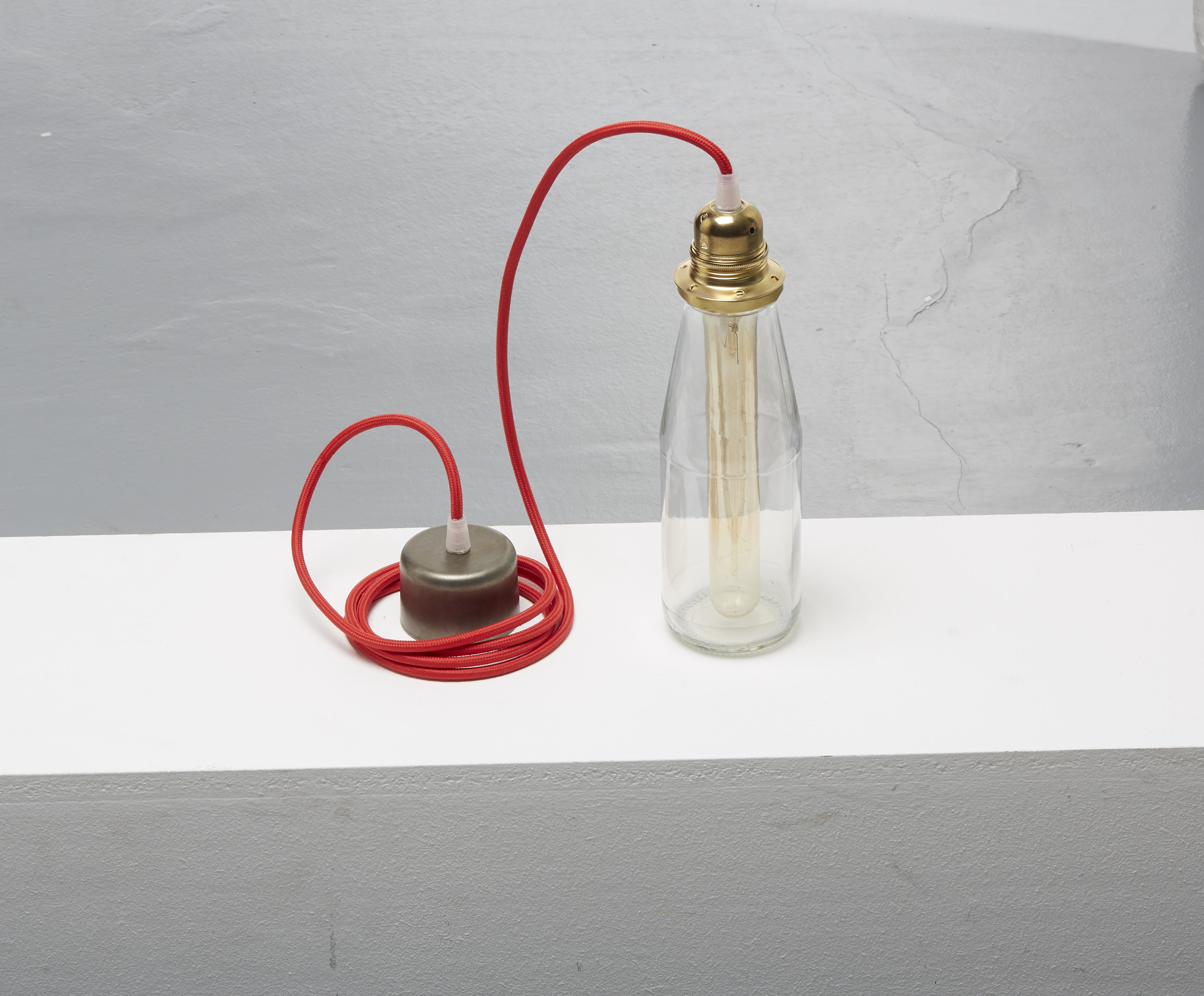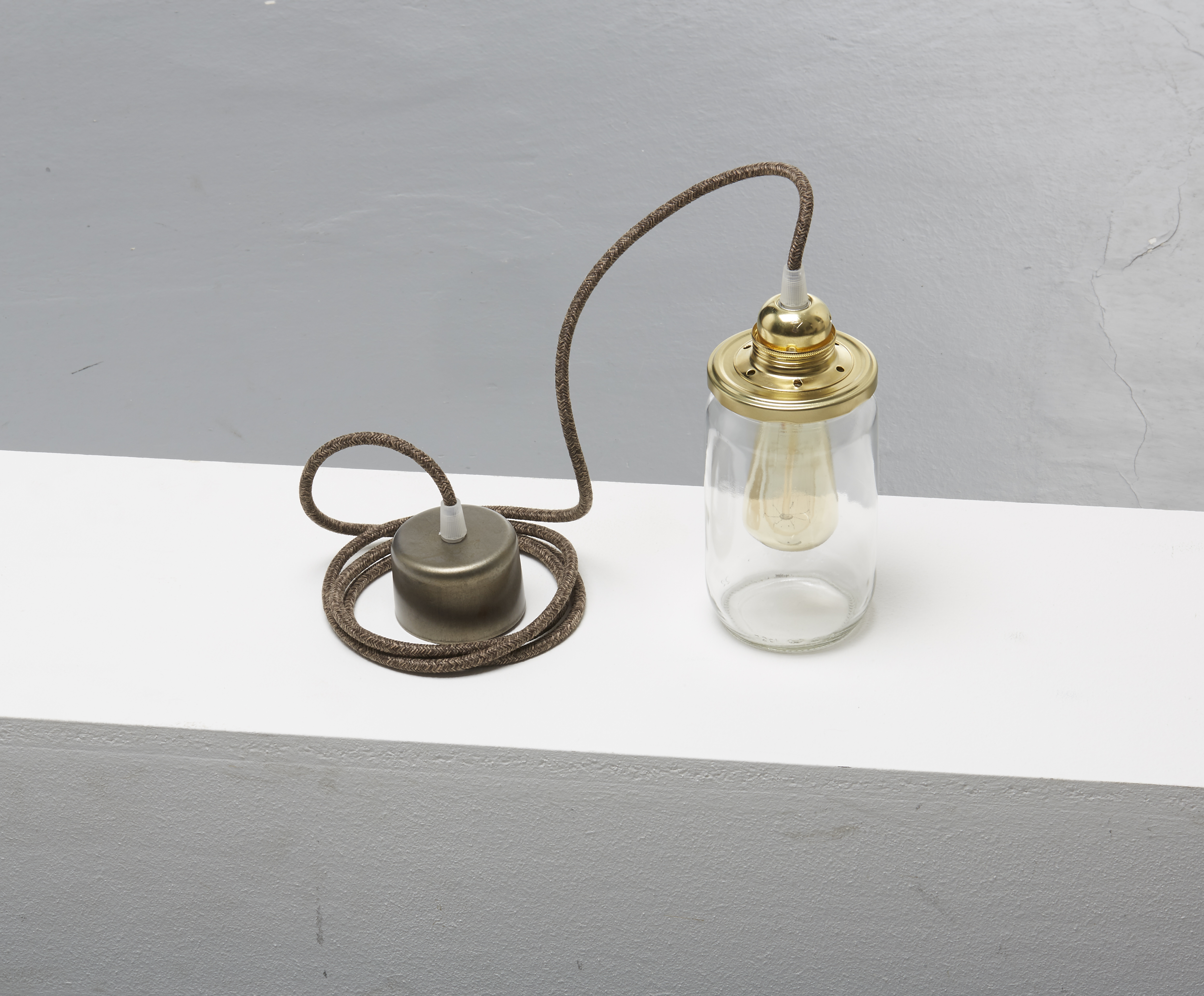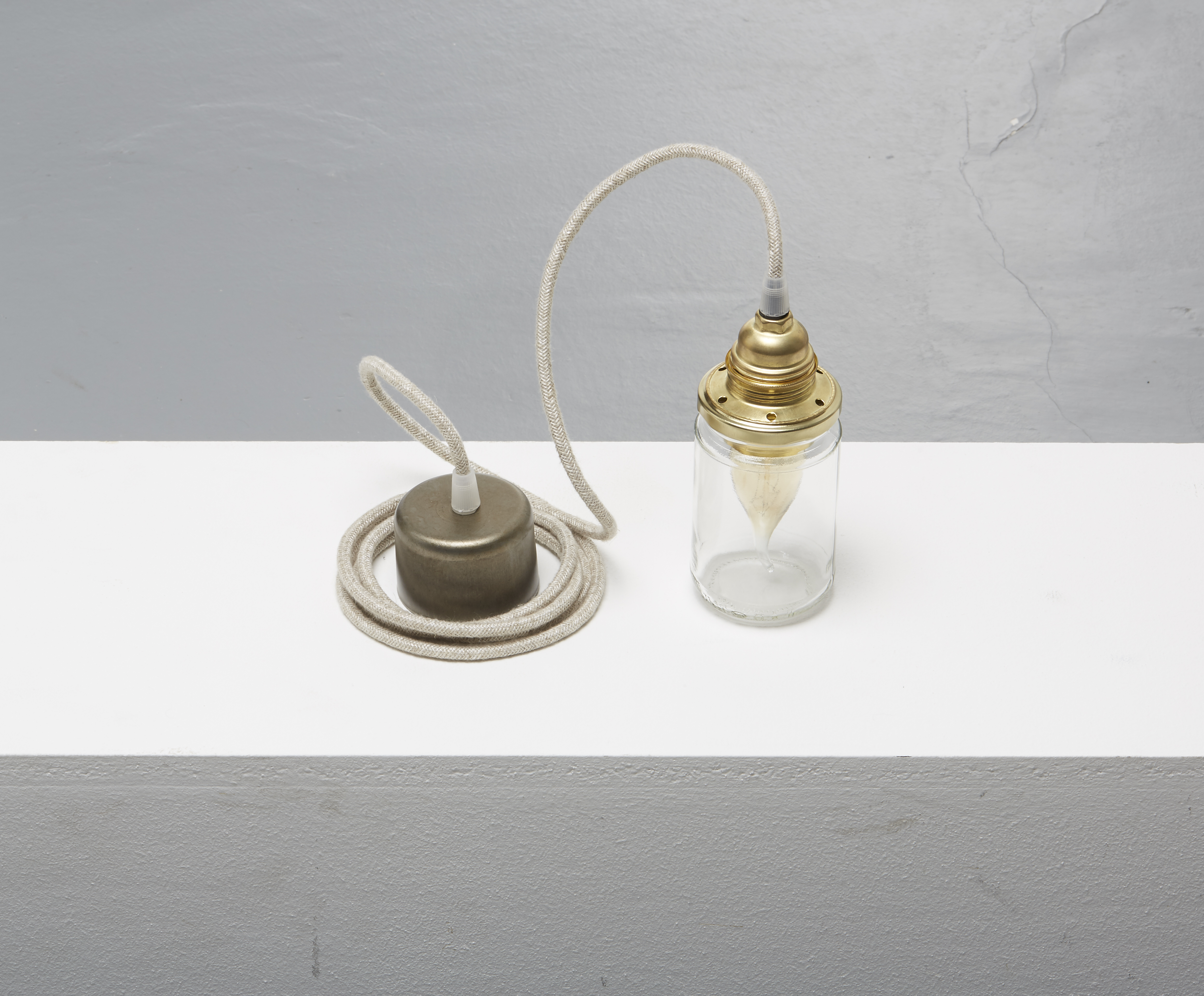 Komplett mit Kabelklemmen, Textilkabel mit Erdungsanschluss zwischen Rose und Lampenfassung.