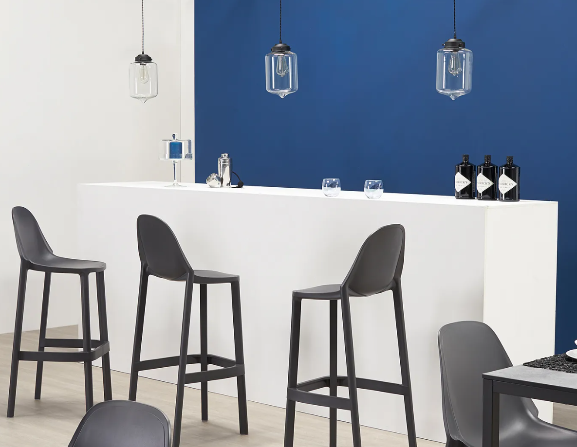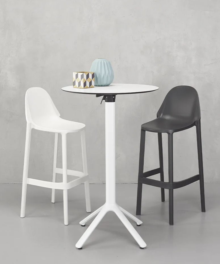 Stapelbar und leicht zu bewegen, ist es ideal für Bars, Terrassen, Vertragsräume und Wohnräume. Sein schlichtes Design macht es vielseitig und zeitlos.