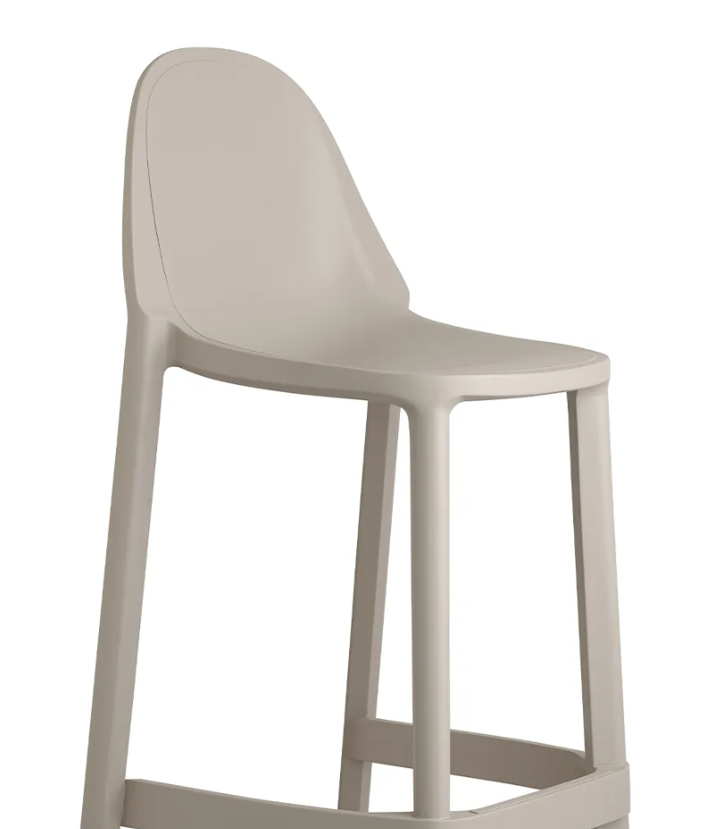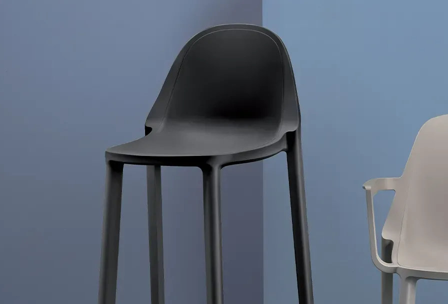 Der aus recycelbarem Technopolymer gefertigte und mit Glasfaser verstärkte Hocker Più ist auf Stabilität, Haltbarkeit und Leichtigkeit ausgelegt.