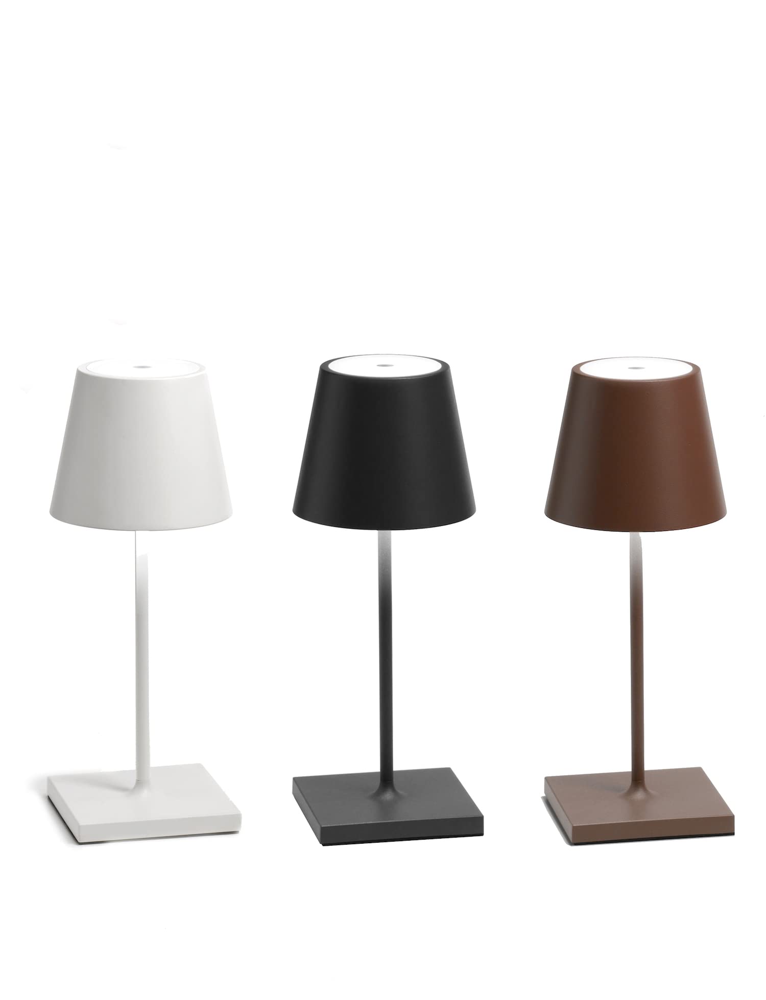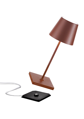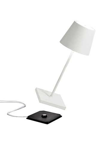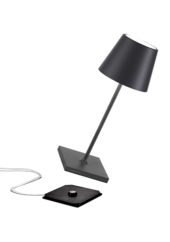 Wiederaufladbare Tischleuchte, inklusive Kontaktladestation, mit lackiertem Aluminiumgehäuse, Polycarbonat-Diffusor und LED-Lichtquelle