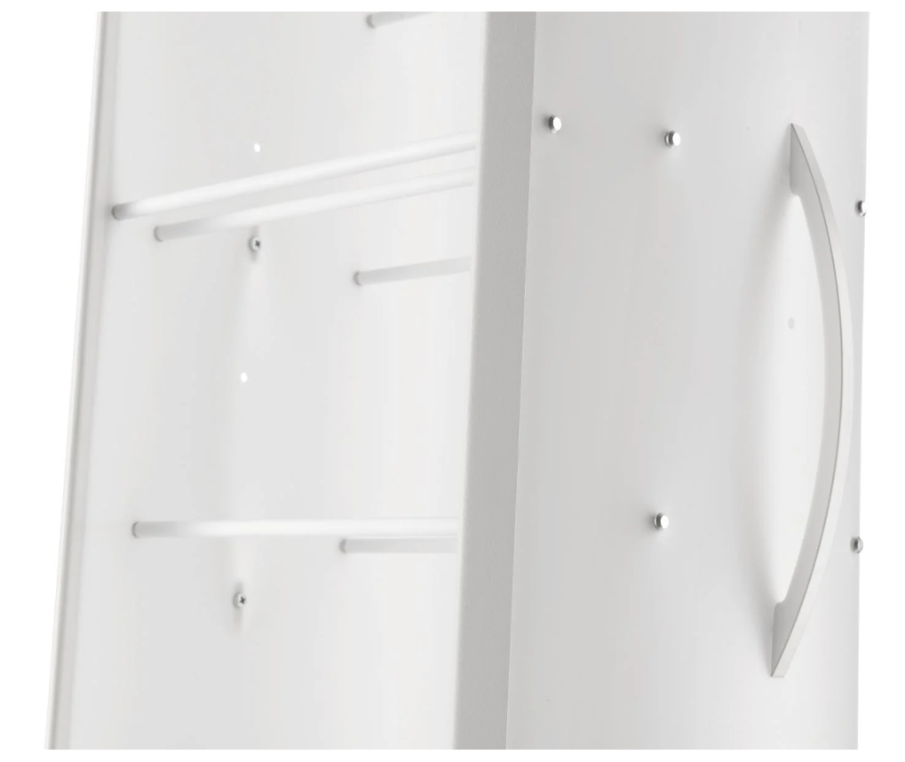 Details aus eloxiertem Aluminium für die Versionen Satinweiß, Grau und Naturholz.