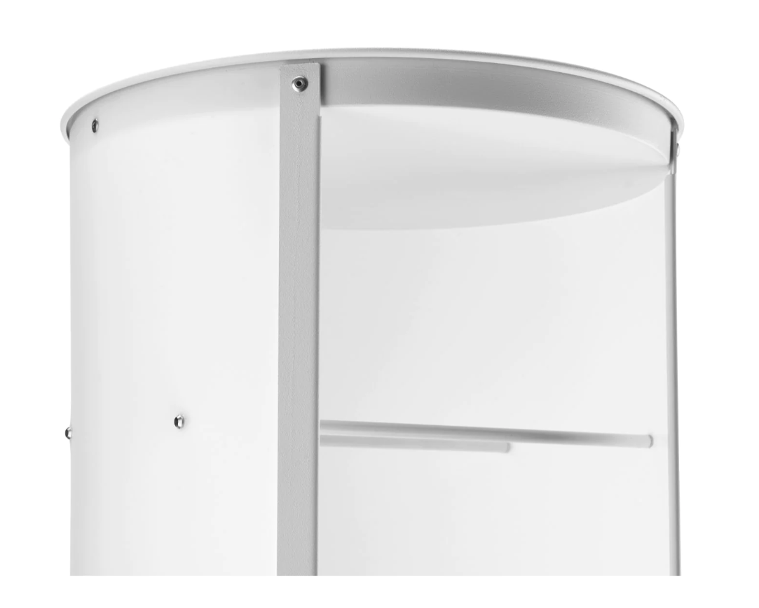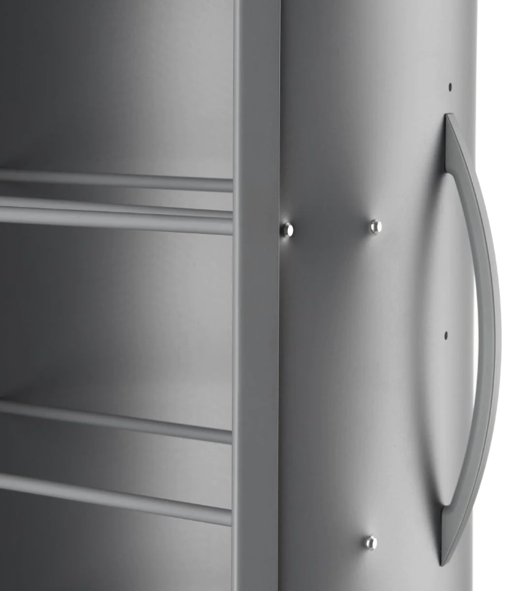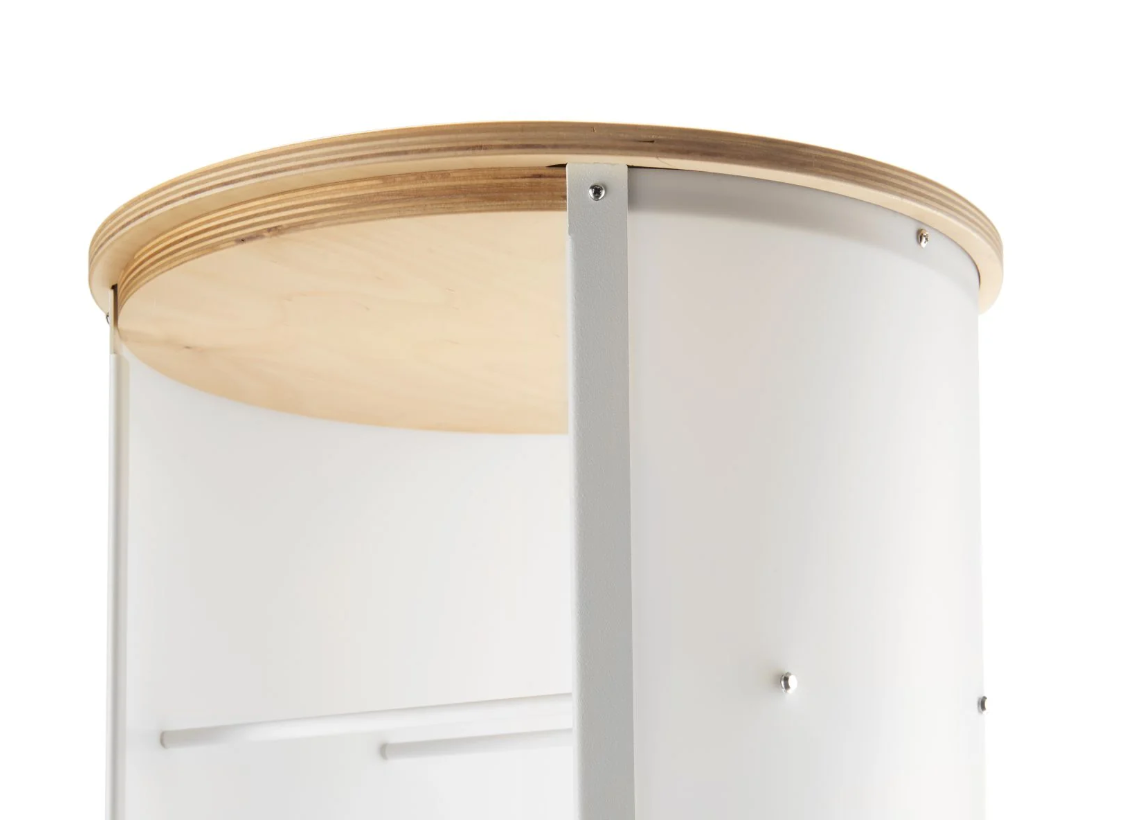 Basis und Oberseite in grauer, weißer oder naturholzlackierter Metallversion erhältlich.