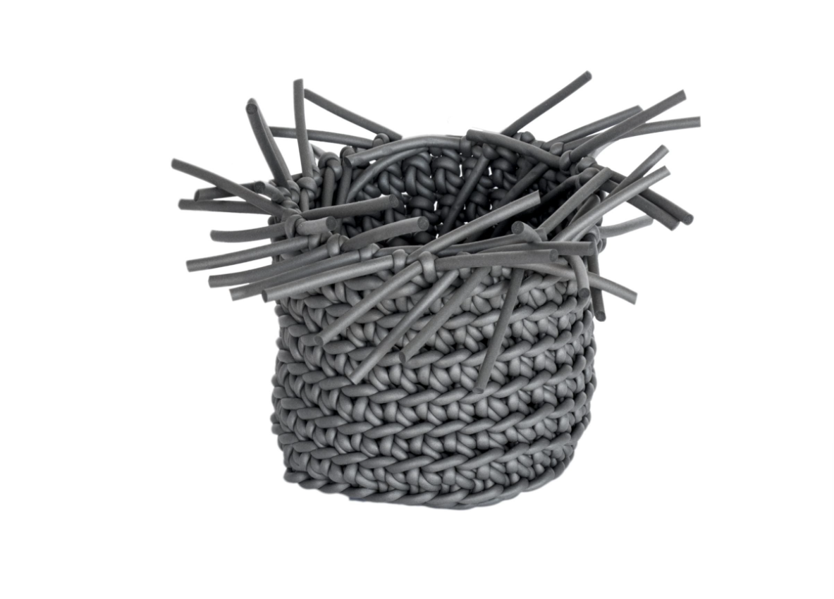 Der Porcupine Basket ist aus dünnem Neoprengarn handgehäkelt, was ihm eine zarte und dennoch robuste Struktur verleiht.