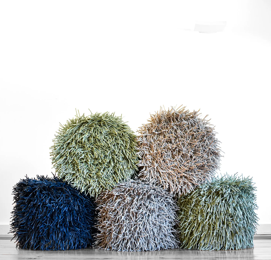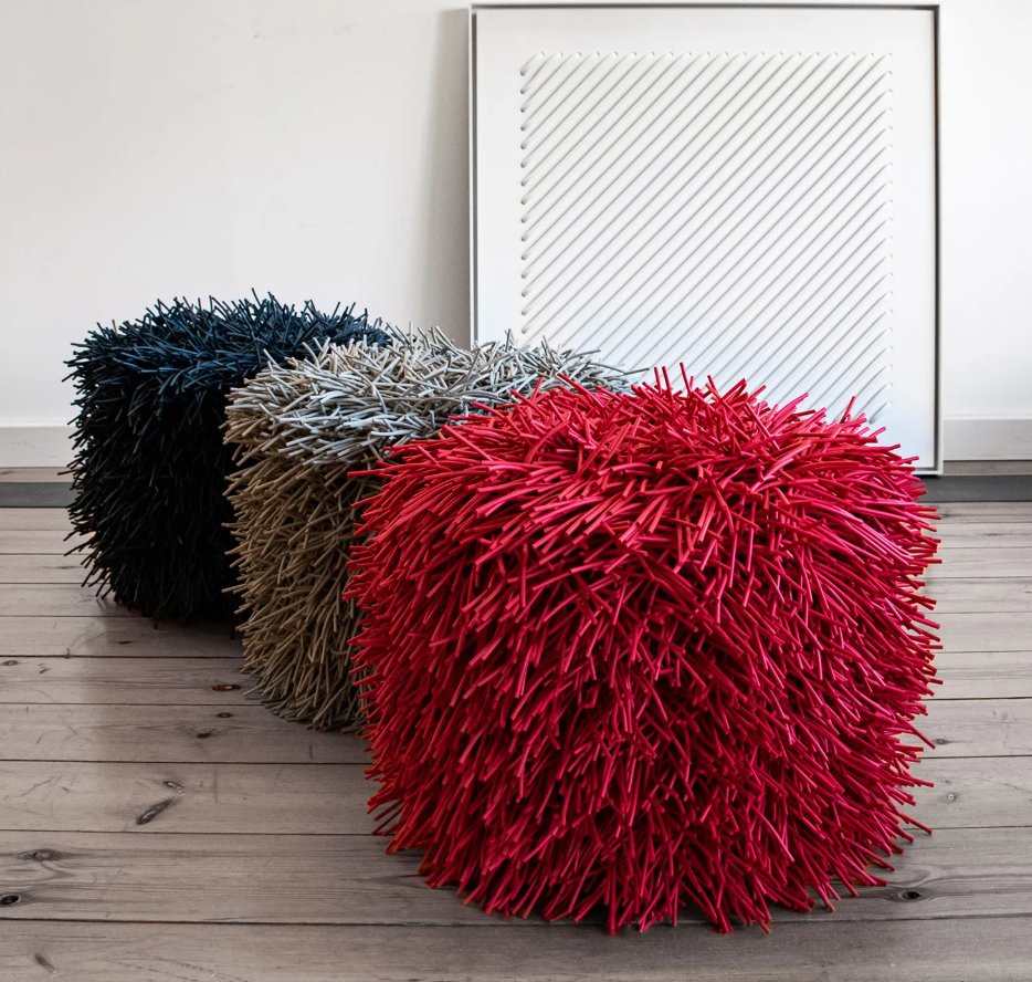 Die Rebels-Poufs werden aus Neoprenfäden unterschiedlicher Dicke hergestellt.