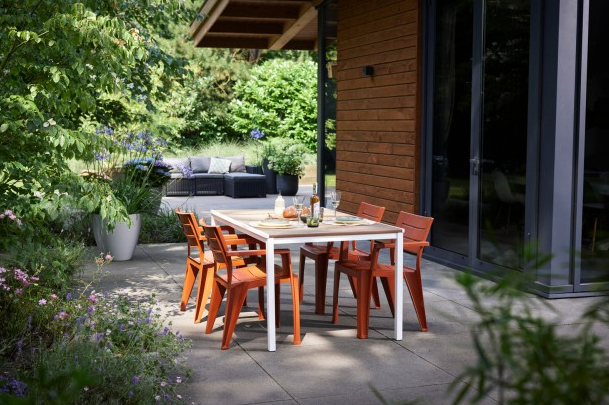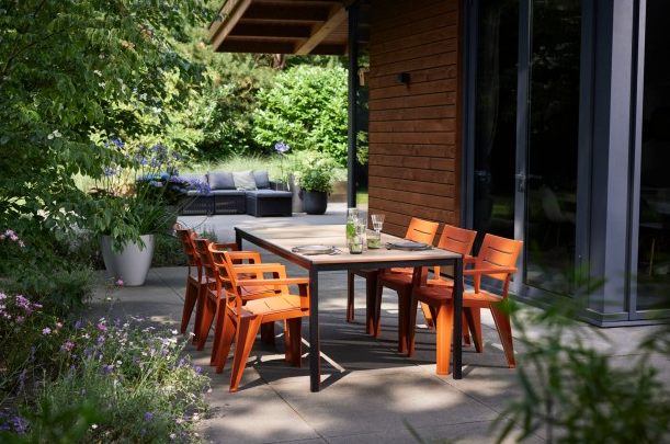 Der Tisch ist robust, stabil und bietet Platz für bis zu 6 Personen. Damit ist er ideal für mittelgroße Außenbereiche wie Gärten, Terrassen und Veranden.