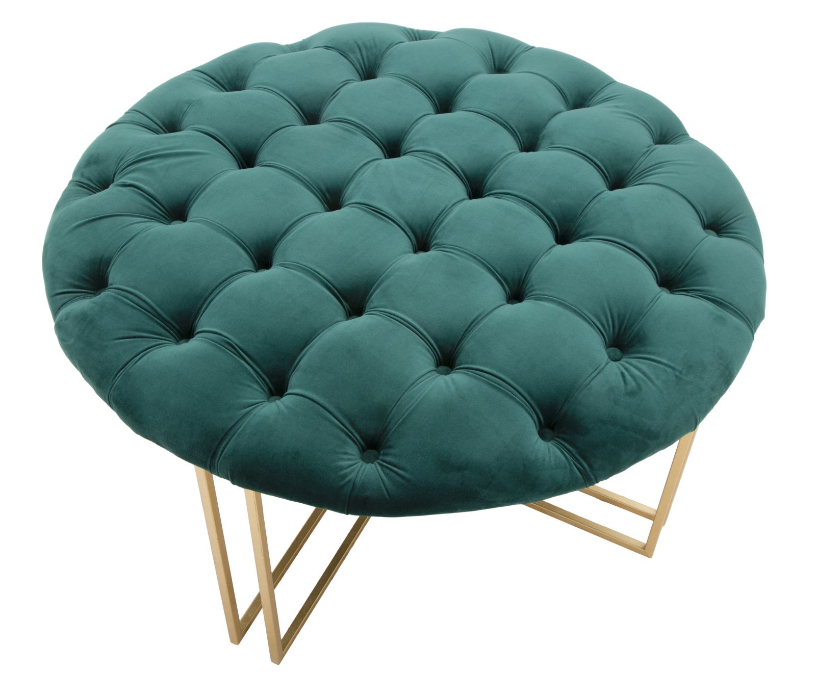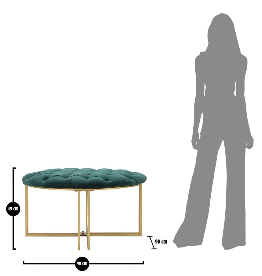 Pouf mit goldener Metallstruktur und Sitz aus gepolstertem und gestepptem Synthetiksamt. Das schlichte und geradlinige Design verleiht jeder Umgebung einen Hauch von Klasse.