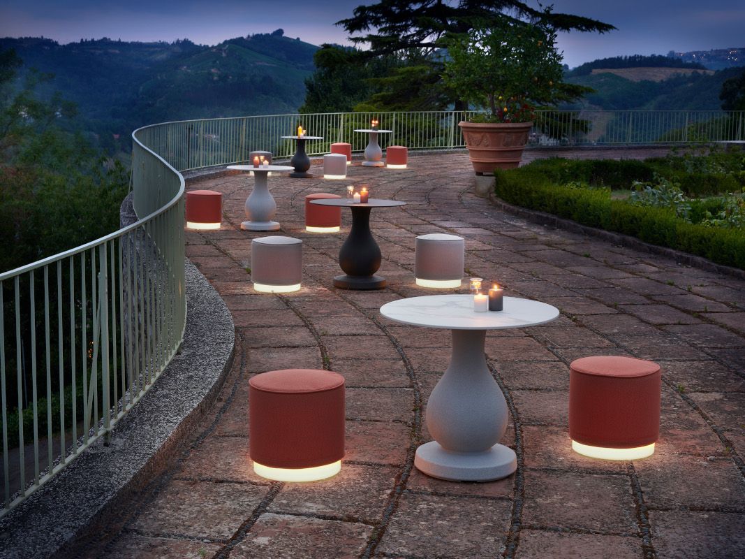 Mit seinem bequemen wasserdichten Kissen und dem unverzichtbaren Design vervollständigt Mara Pouf die Mara-Kollektion mit Eleganz und Einfachheit, bestehend aus dem Mara-Loungesessel und dem Mara-Sofa-Zweisitzer-Sofa. Die Basis kann dank der Möglichkeit, das Bluetooth Candy Light RGB einzusetzen, die ganze Magie des Lichts ohne Kabel enthalten.