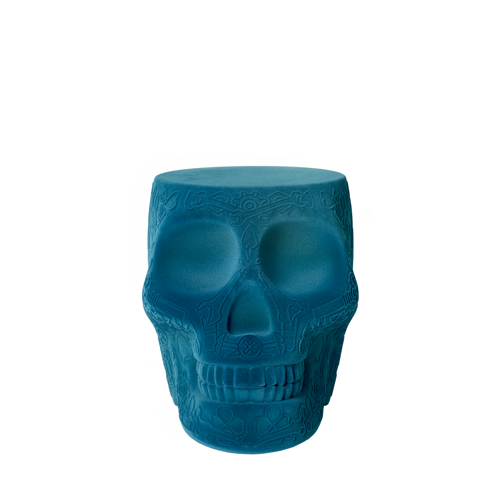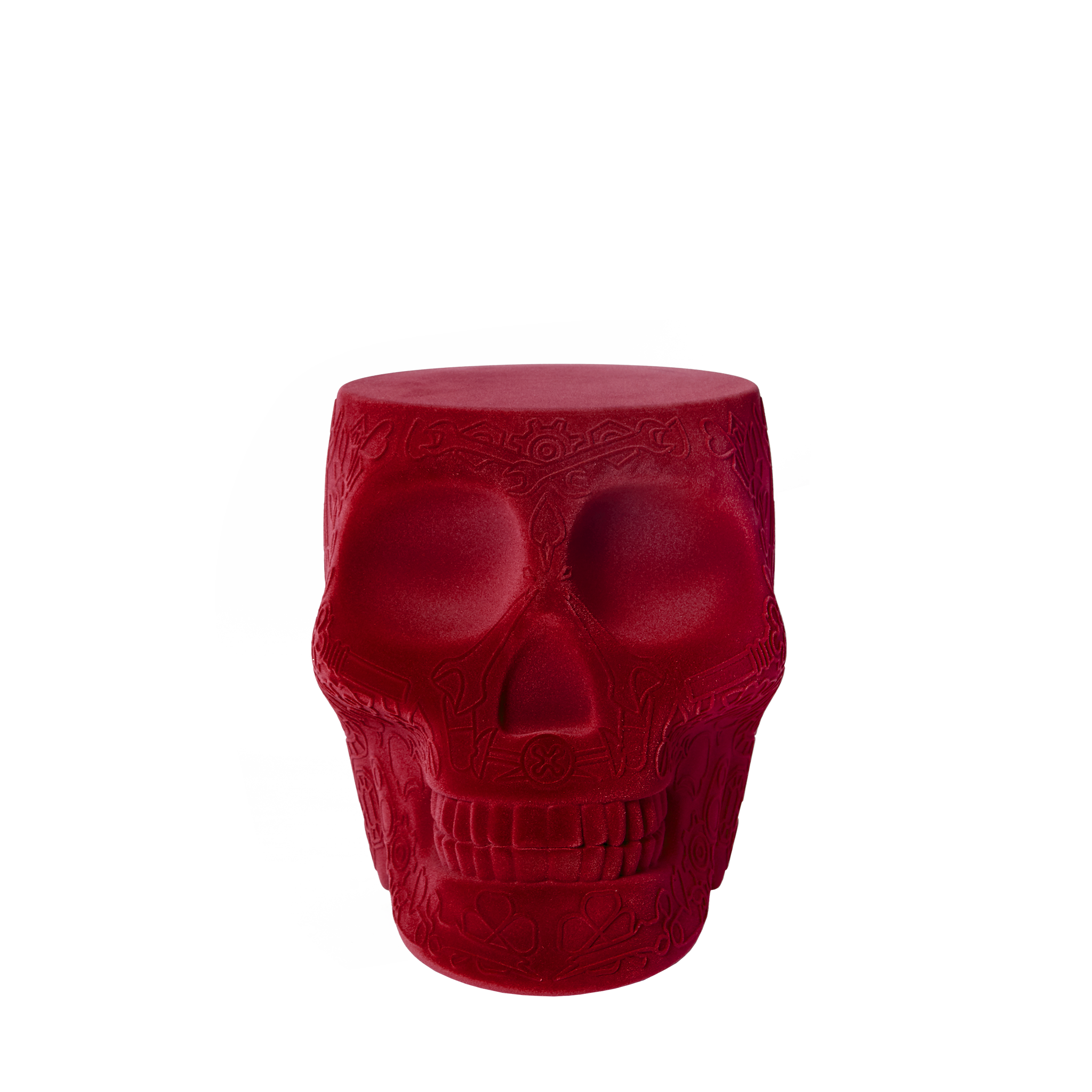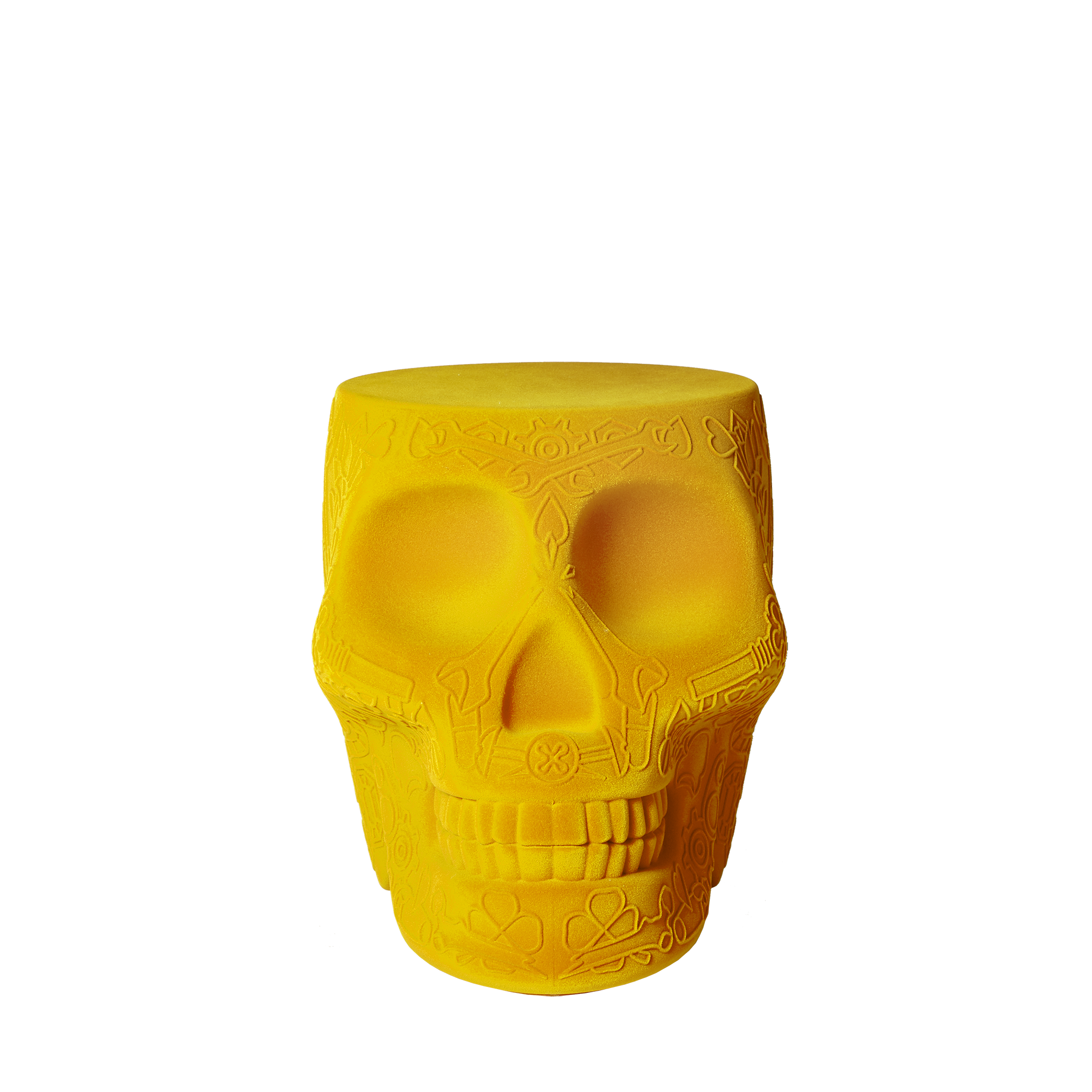 Mexico, entworfen von Studio Job, ist ein schädelartiges Designobjekt mit einem grafischen Motiv auf der Oberfläche, das sowohl als Hocker als auch als Tisch dient. Mexiko erinnert an die traditionell bemalten Schädel des gleichnamigen Landes und erinnert auf skurrile Weise an die zyklische Natur unserer Präsenz auf der Erde, um den Tod auszutreiben und das Leben zu feiern. Mit samtiger Oberfläche ist es nur für den Innenbereich geeignet.