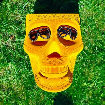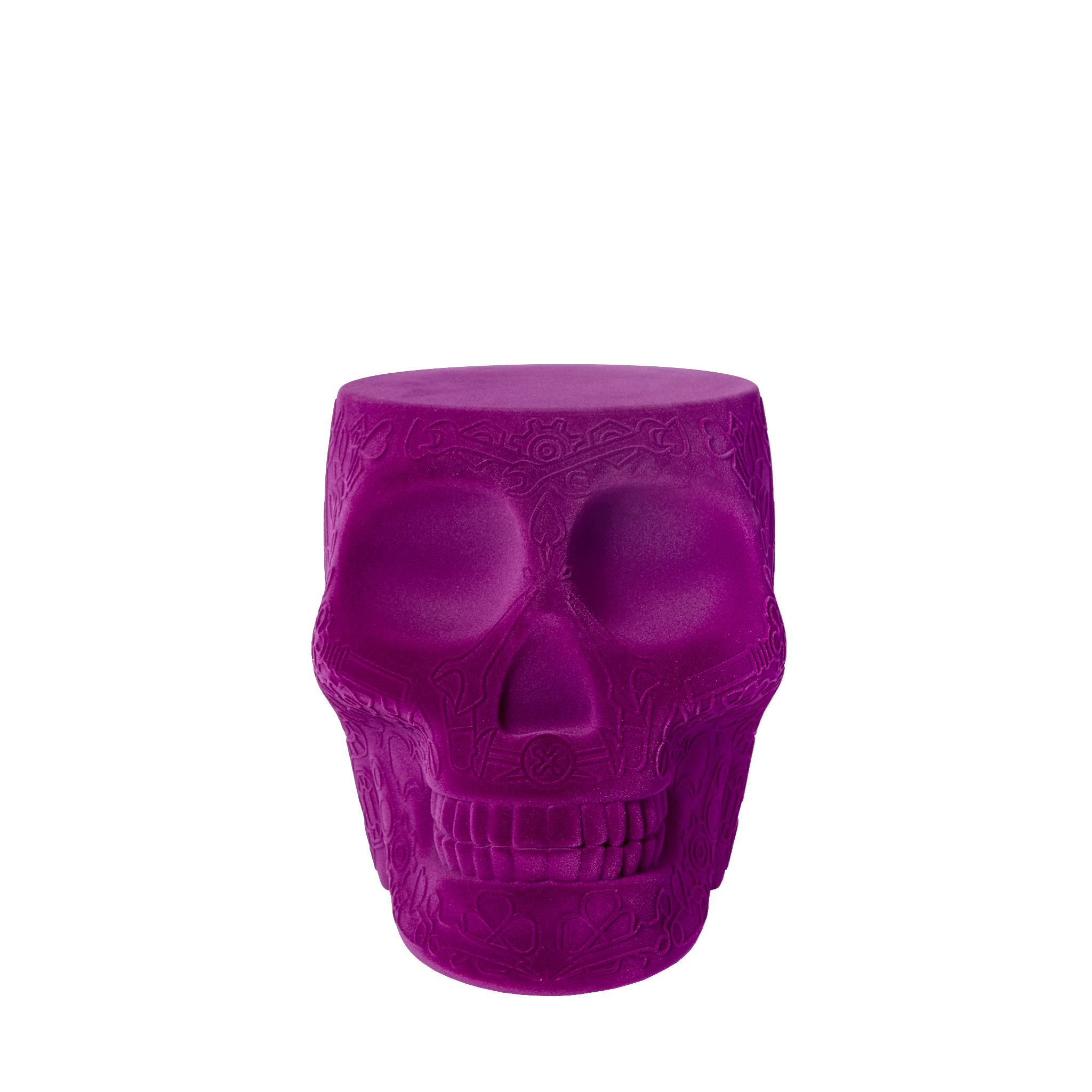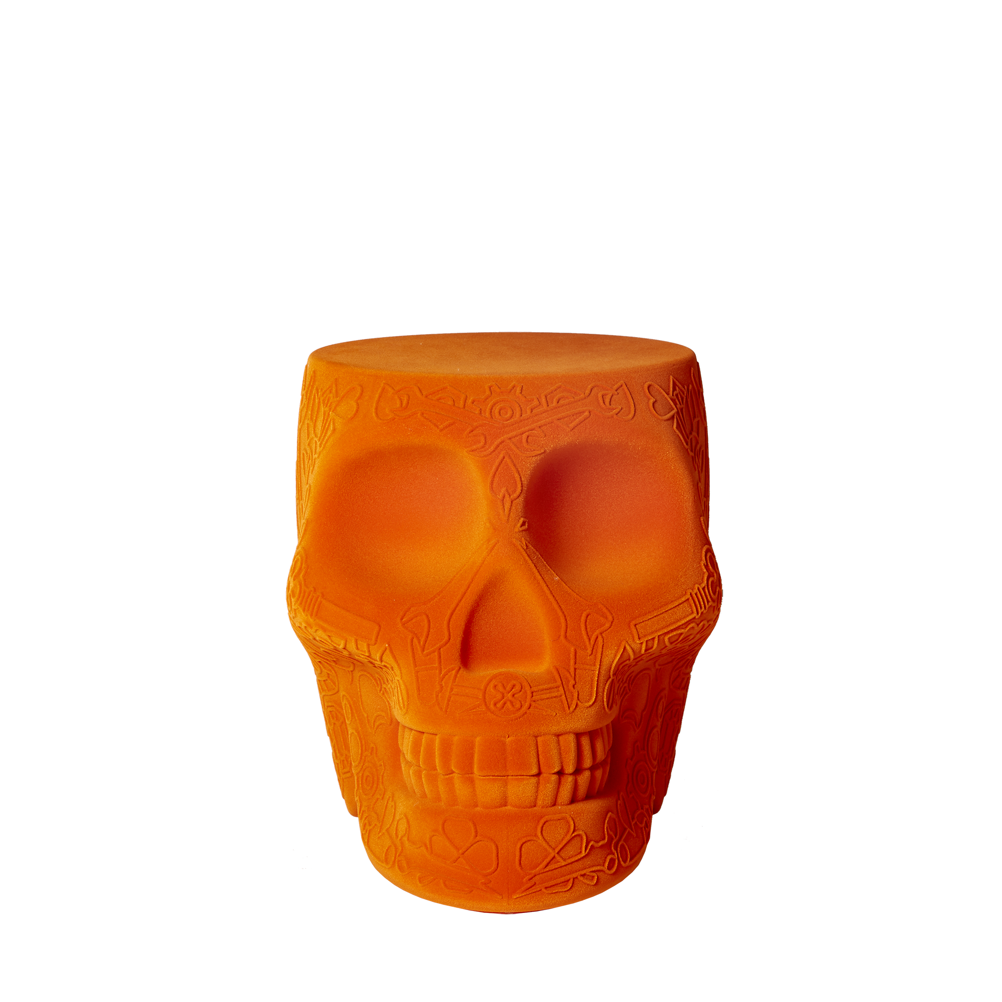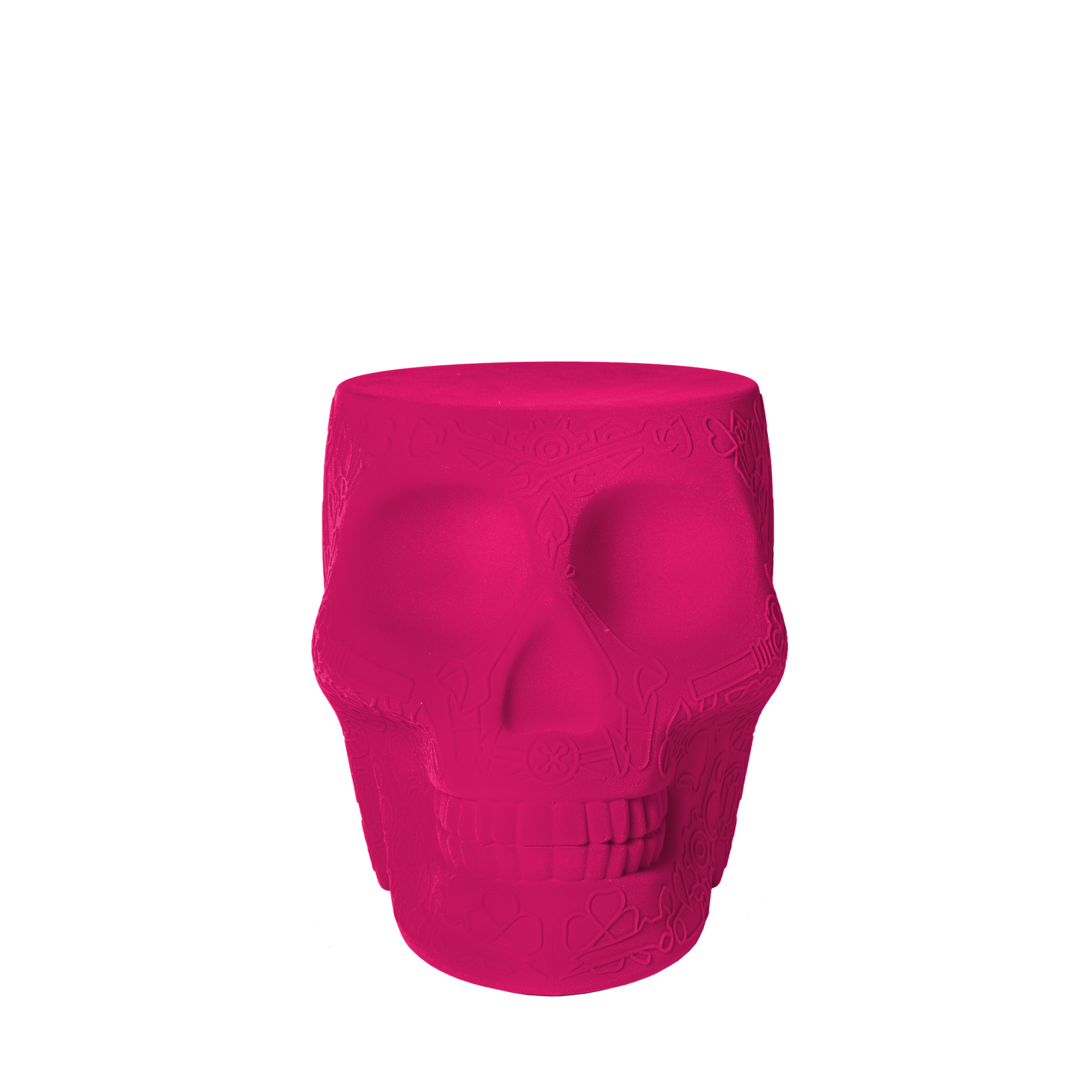 Mexico, entworfen von Studio Job, ist ein schädelartiges Designobjekt mit einem grafischen Motiv auf der Oberfläche, das sowohl als Hocker als auch als Tisch dient. Mexiko erinnert an die traditionell bemalten Schädel des gleichnamigen Landes und erinnert auf skurrile Weise an die zyklische Natur unserer Präsenz auf der Erde, um den Tod auszutreiben und das Leben zu feiern. Mit samtiger Oberfläche ist es nur für den Innenbereich geeignet.