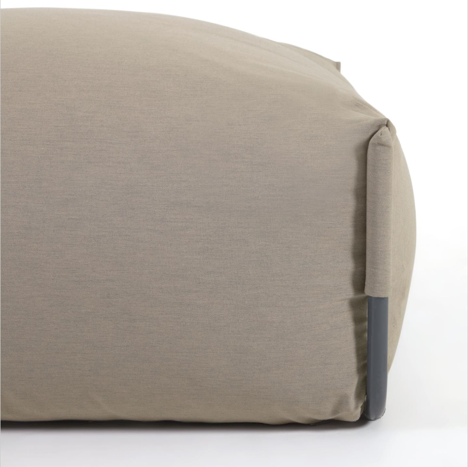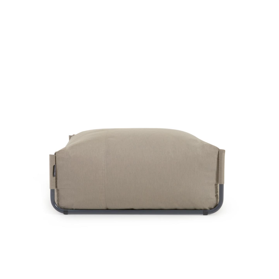 Der Pouf ist mit wasserabweisendem und UV-beständigem technischem Gewebe bezogen und mit schnelltrocknenden, wasserabweisenden Materialien gepolstert – ideal für den Außenbereich. Dank der modularen Struktur lässt er sich problemlos mit anderen Elementen der Linie kombinieren und so individuelle Kompositionen kreieren: Ecksofas, Chaiselongues oder Entspannungsinseln.