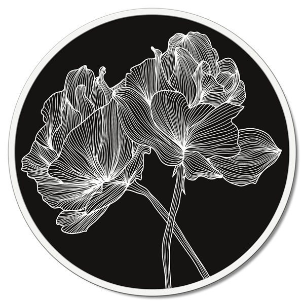 Runde Holzfaserplatte aus hochauflösendem Canvas aus reiner Baumwolle mit matt lackiertem Metallrahmen.