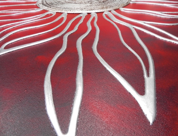 Reliefelemente handdekoriert mit Harzen, Material, Blattsilber auf Leinenstruktur, glänzend.