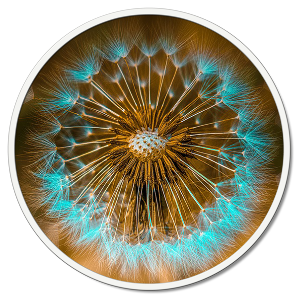 Runde Holzfaserplatte aus hochauflösendem Canvas aus reiner Baumwolle mit matt lackiertem Metallrahmen.