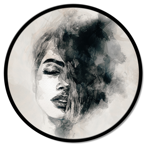Runde Holzfaserplatte aus hochauflösendem Canvas aus reiner Baumwolle mit matt lackiertem Metallrahmen.