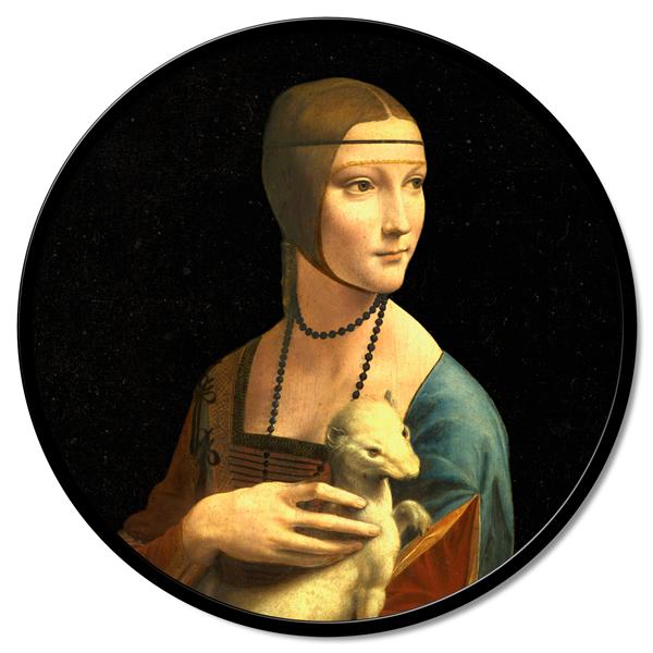 Runde Holzfaserplatte aus hochauflösendem Canvas aus reiner Baumwolle mit matt lackiertem Metallrahmen.
