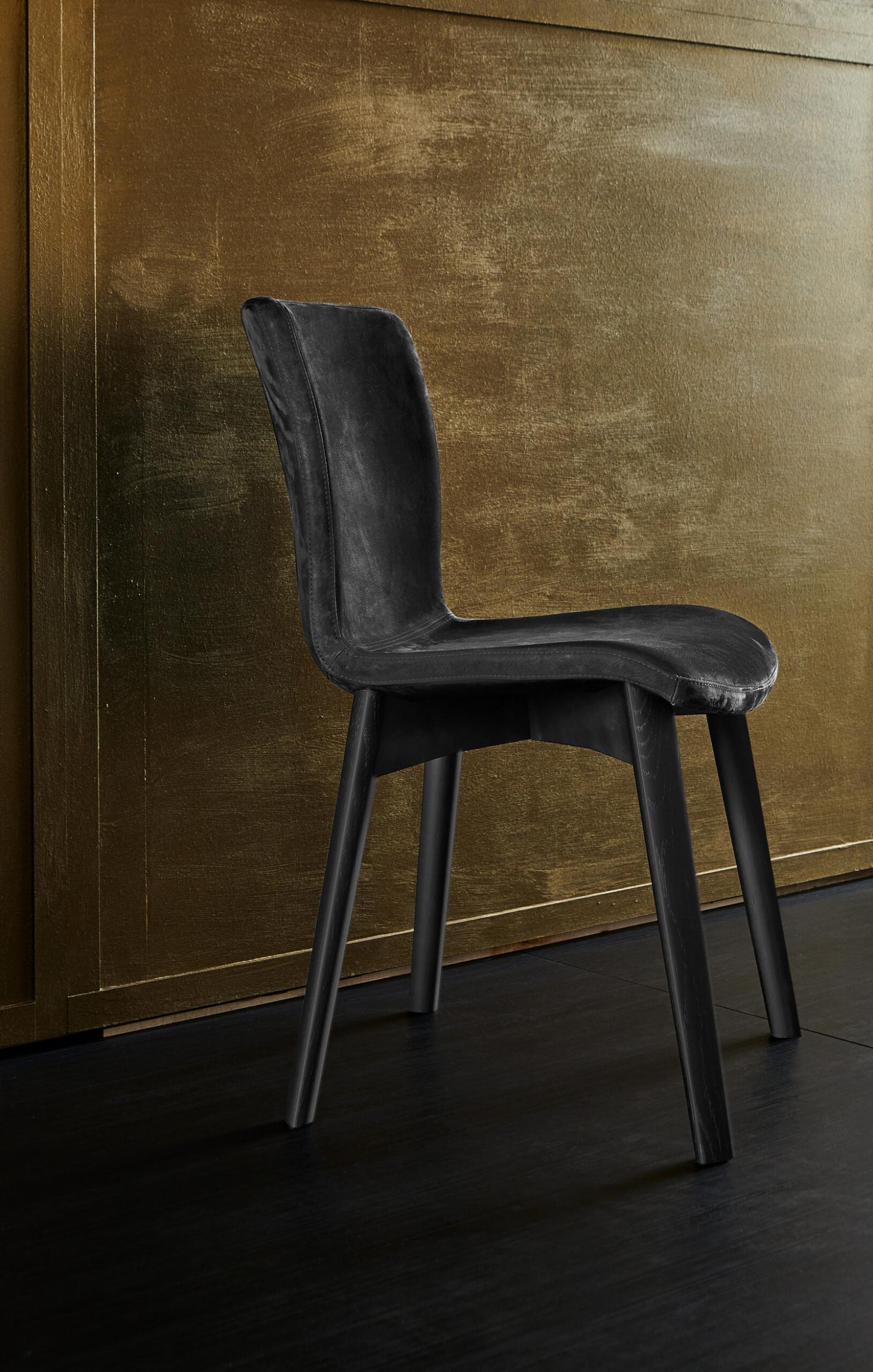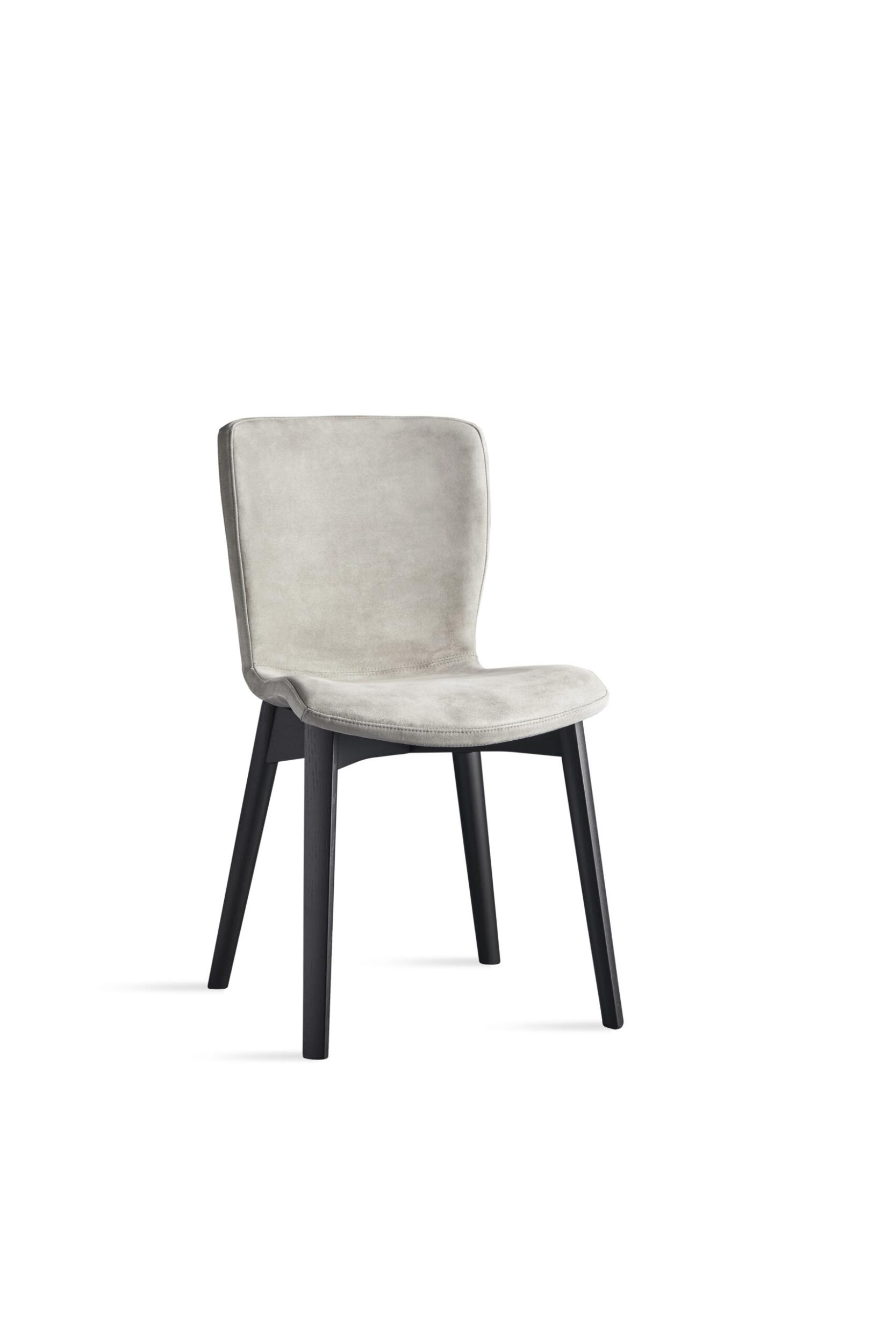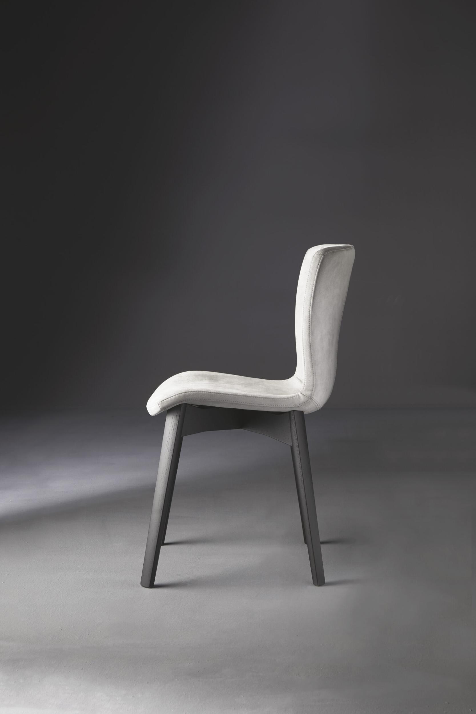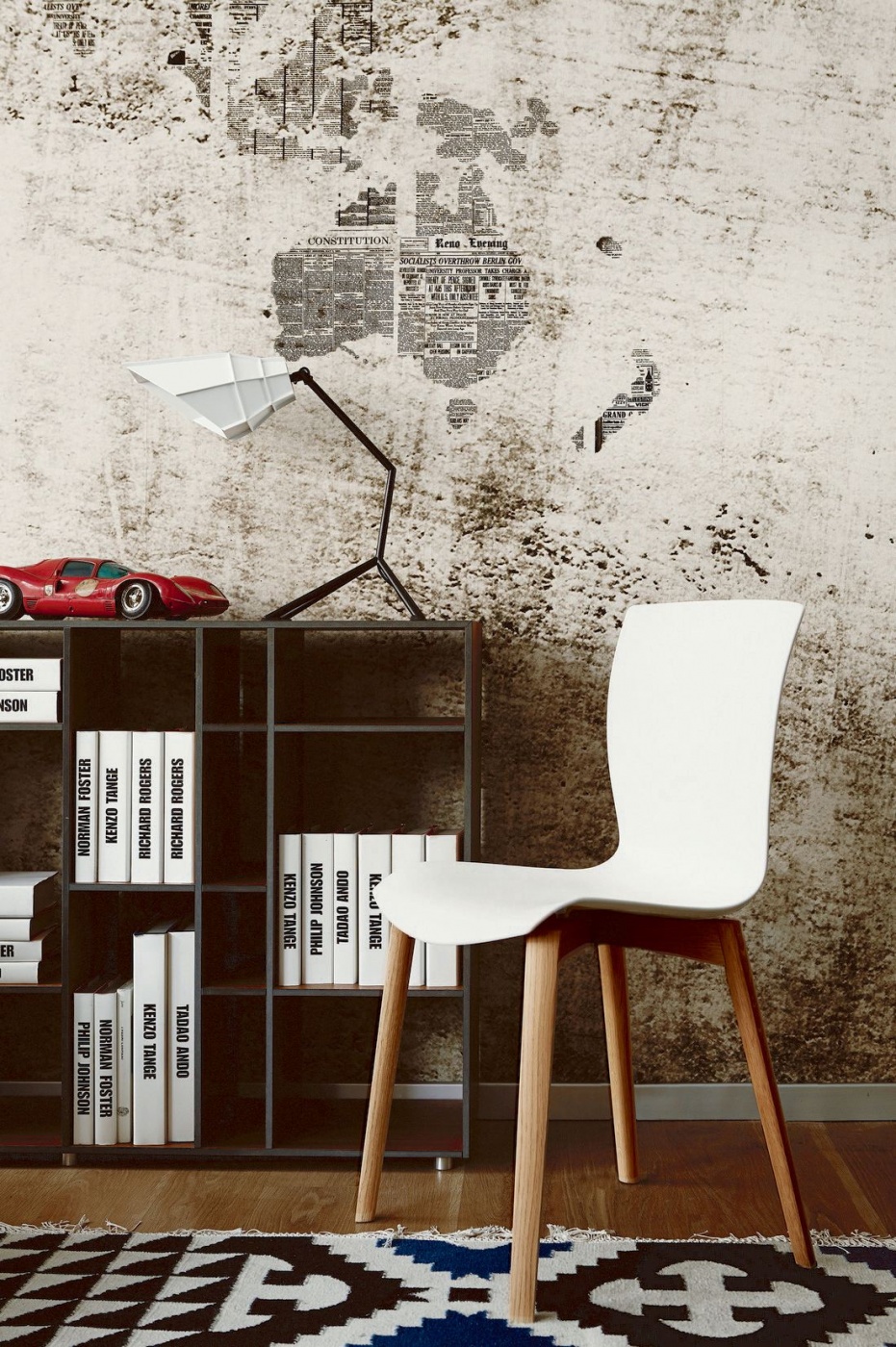 Stuhl mit Eichenholzstruktur und Sitz aus Polypropylen mit weichem Griff.
