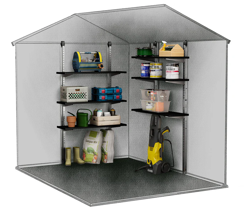 Es ist robust und funktional und besteht aus 4 geräumigen Regalen , die jeweils bis zu 25 kg tragen können und sich perfekt zur Aufbewahrung von Werkzeugen, Kisten, Haushaltsprodukten oder Gartenartikeln eignen.