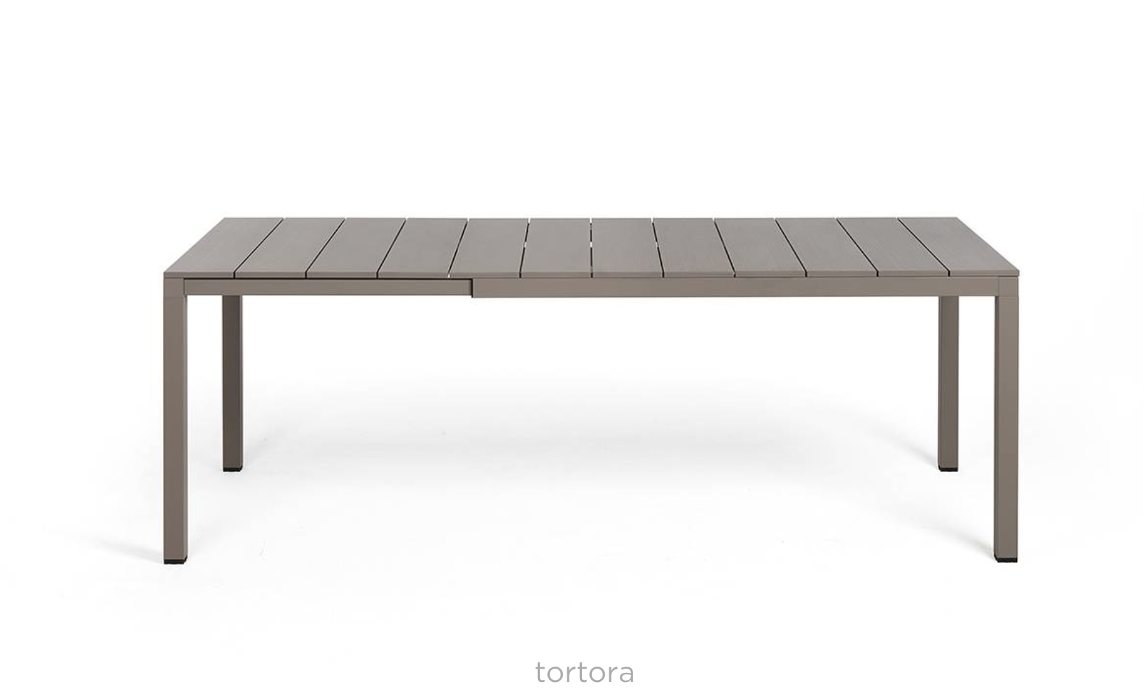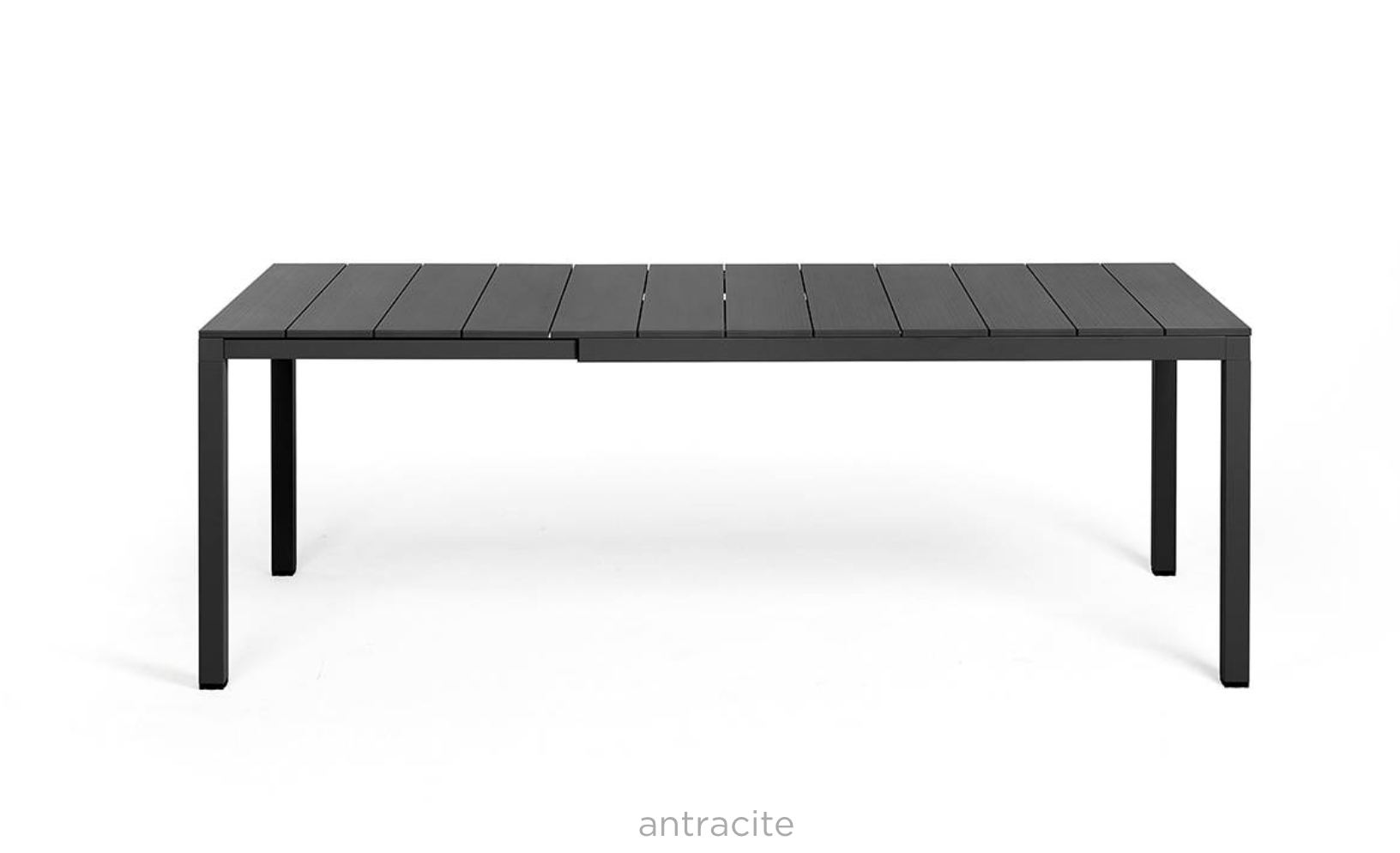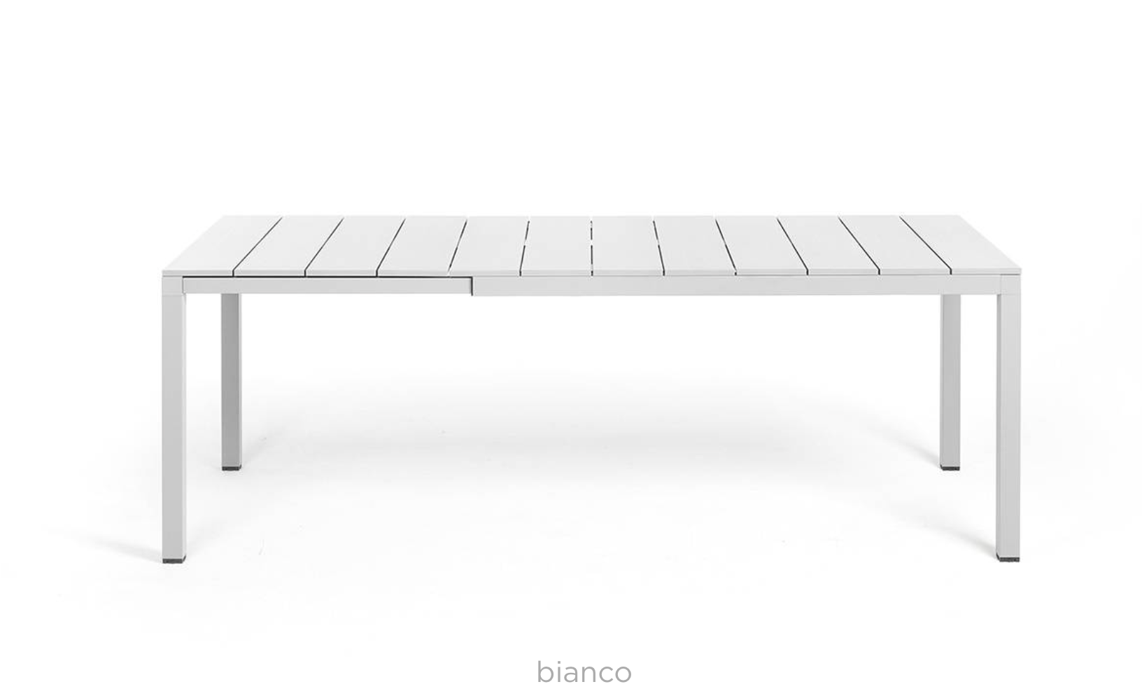 Ausziehbarer Tisch mit architektonischen Details und starker Persönlichkeit. Lattenrost aus lackiertem Aluminium leicht liniert und Struktur auch aus lackiertem Aluminium. Vorgeschlagen in zwei Größen, um den unterschiedlichen Platzbedürfnissen gerecht zu werden.