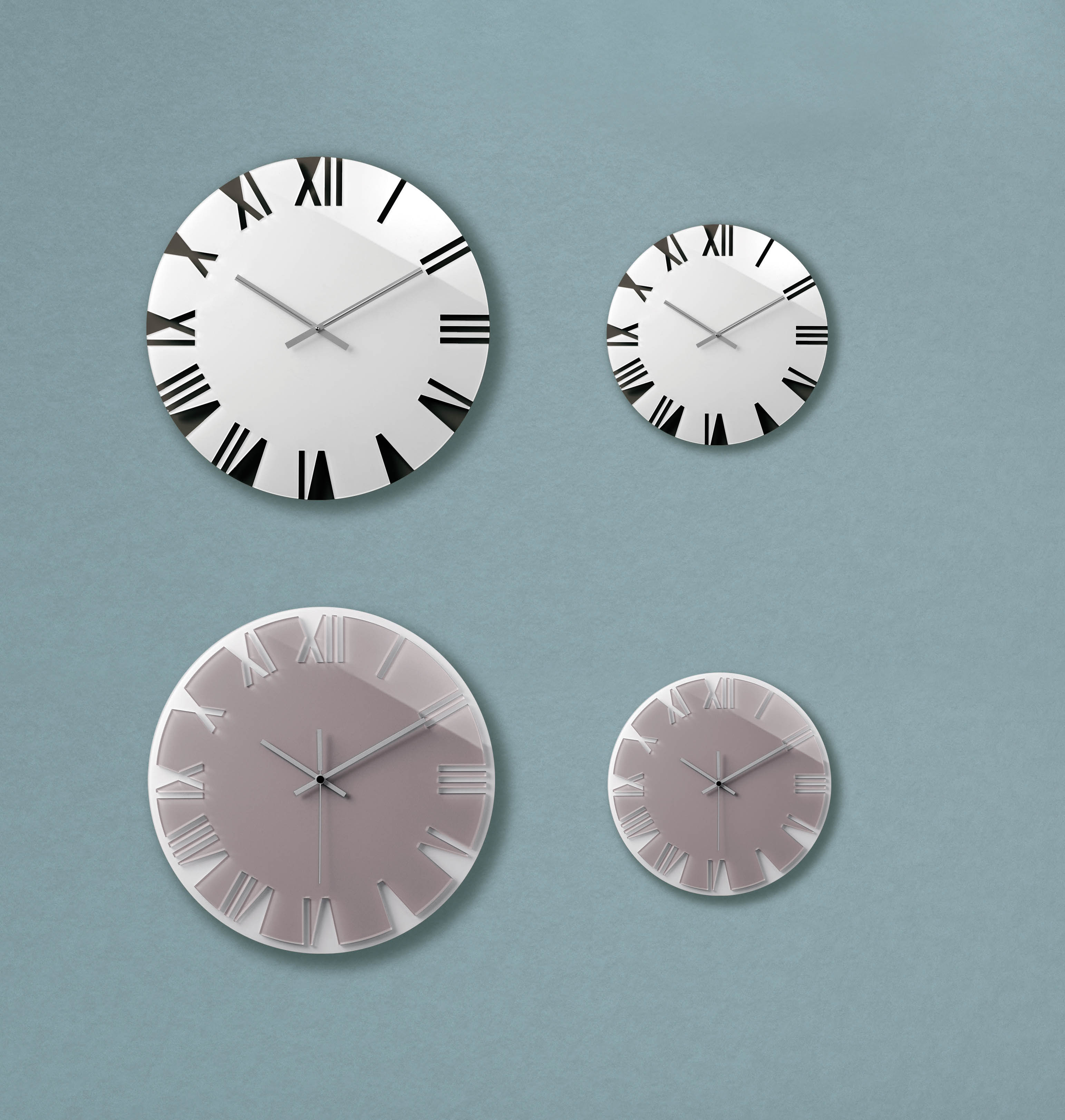 Runde Wanduhr aus zweifarbigem Acrylglas und Quarzwerk.