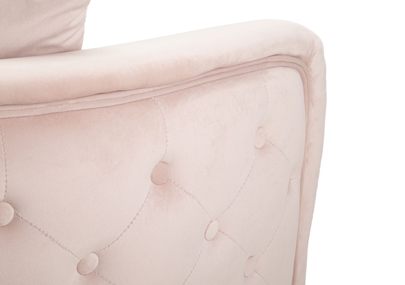 2-Sitzer-Sofa aus rosa gepolstertem Stoff mit bequemen Armlehnen. Die Farbe des Stoffes und die Eleganz der goldenen Beine verleihen jeder Umgebung einen Hauch von Klasse. Komplett mit 2 Kissen.