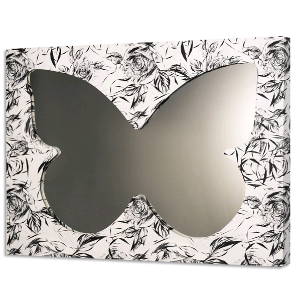 Spiegel mit Holzstruktur, geformt und mit hochauflösender bedruckter Leinwand bedeckt.