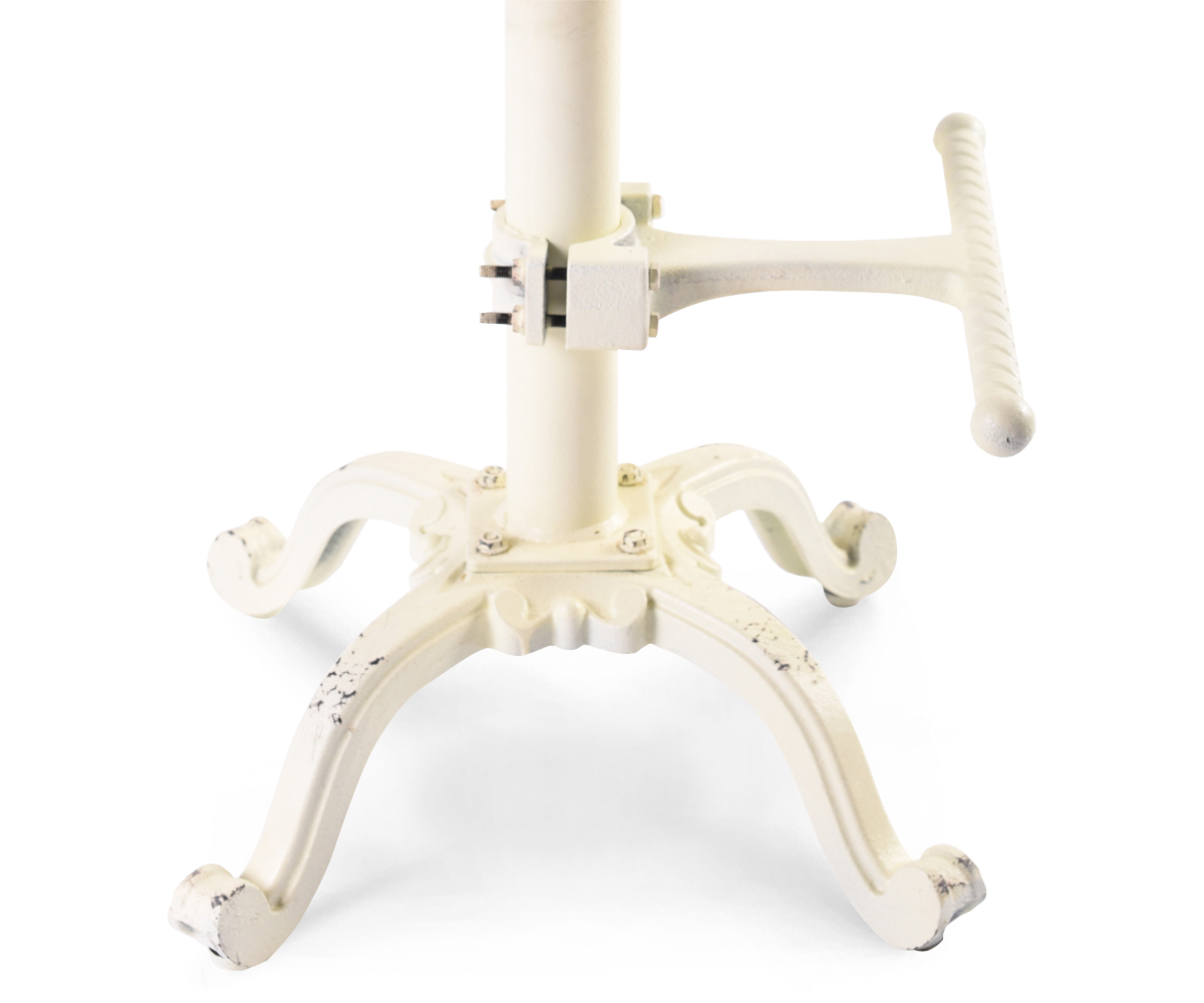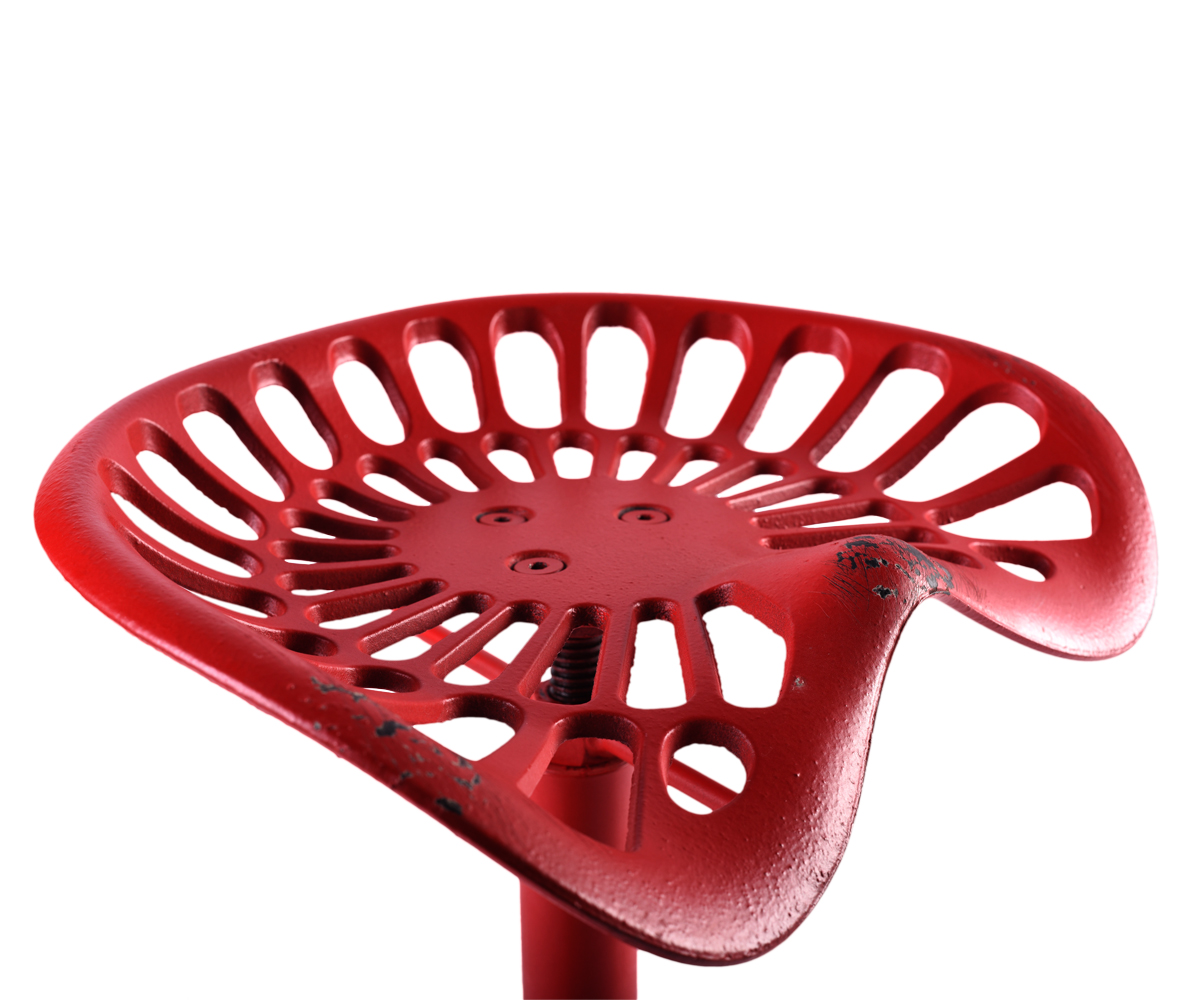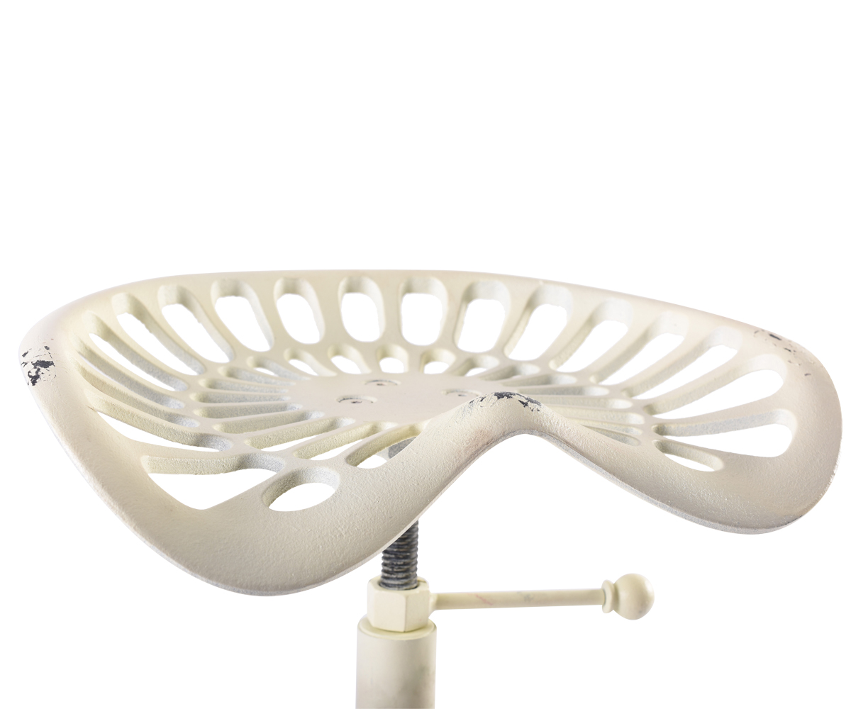 Hoher, höhenverstellbarer Hocker im Vintage-Industriestil. Rahmen aus lackiertem Gusseisen.