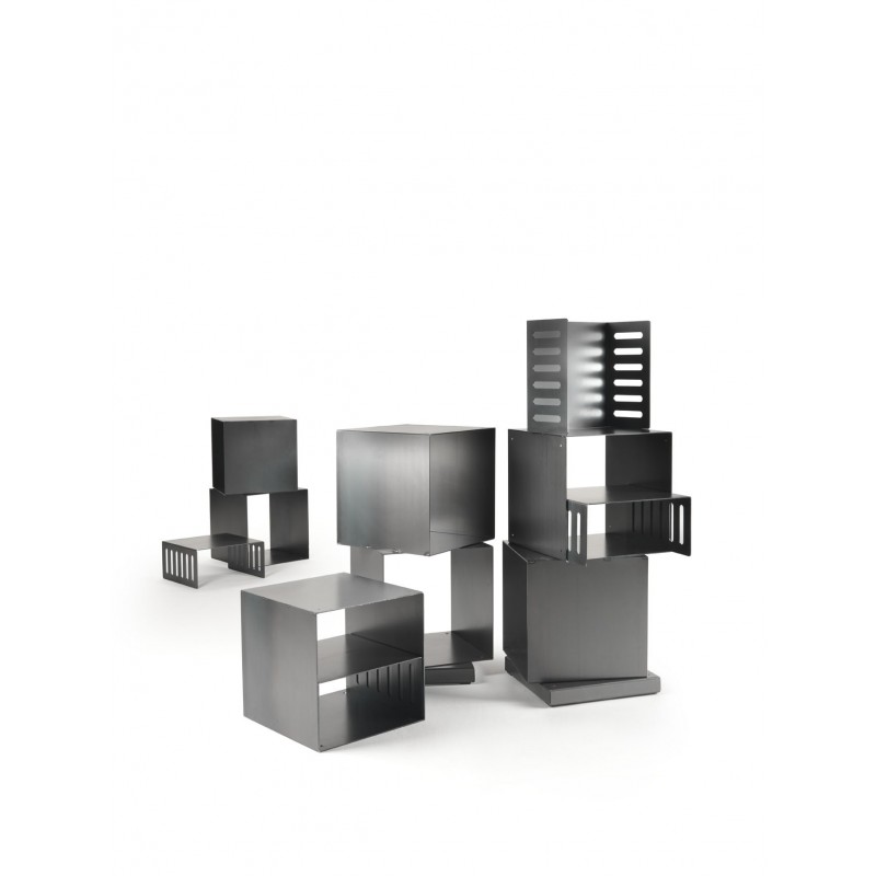 Mit seinem Spiel aus vollen und leeren Würfeln passt Serafino perfekt zu modernen und industriellen Umgebungen und bietet eine einzigartige Mischung aus Funktionalität und Ästhetik. Dieses aus hochwertigem Stahl gefertigte Bücherregal verkörpert die Essenz der Designphilosophie von Siderio: minimalistisches Design und widerstandsfähige Materialien, ein Symbol für hervorragende Handwerkskunst und zeitgenössischen Stil.