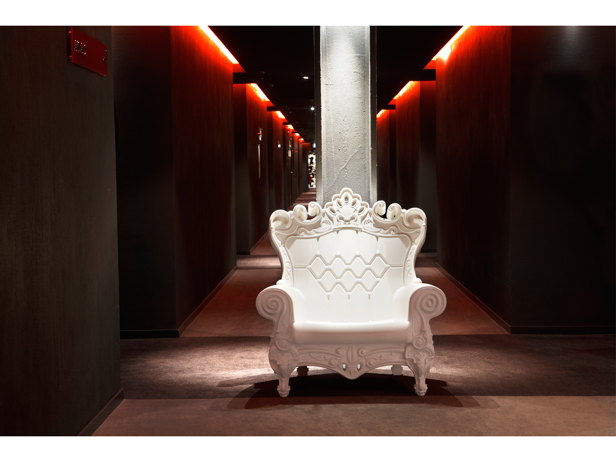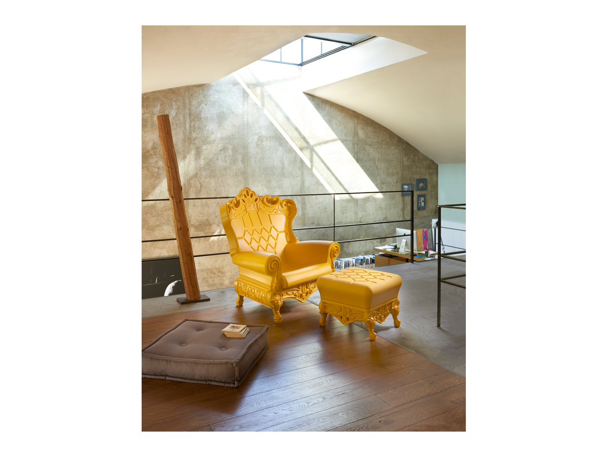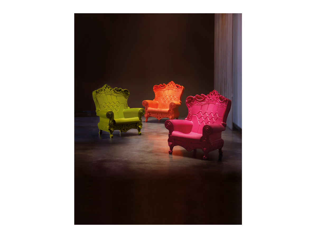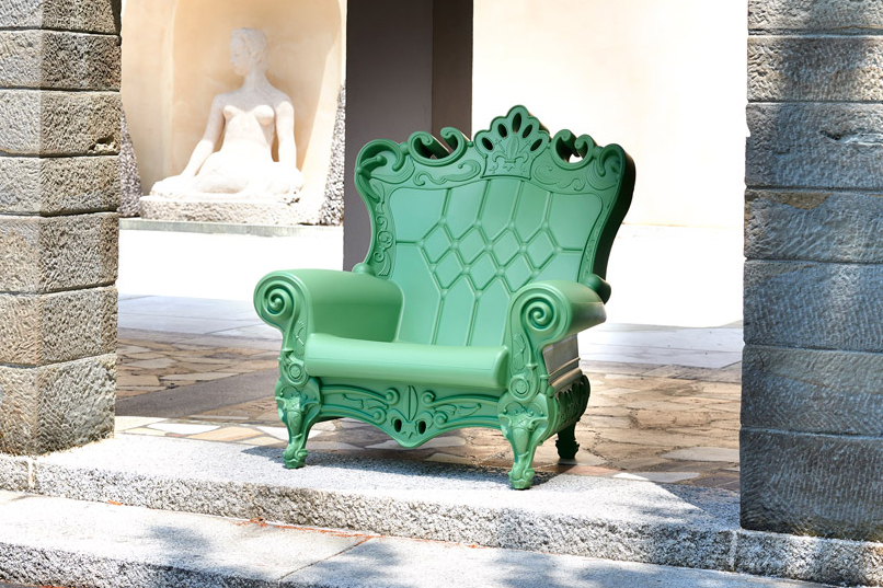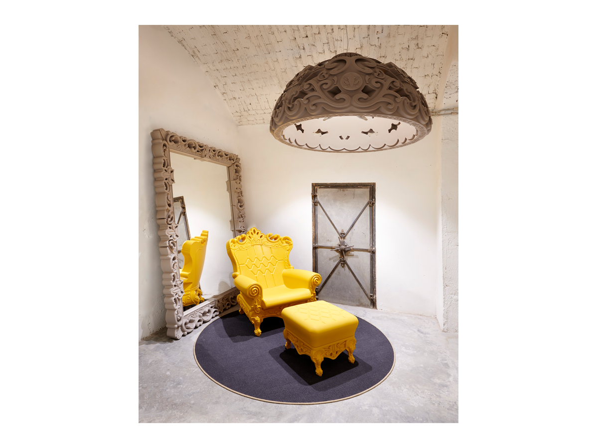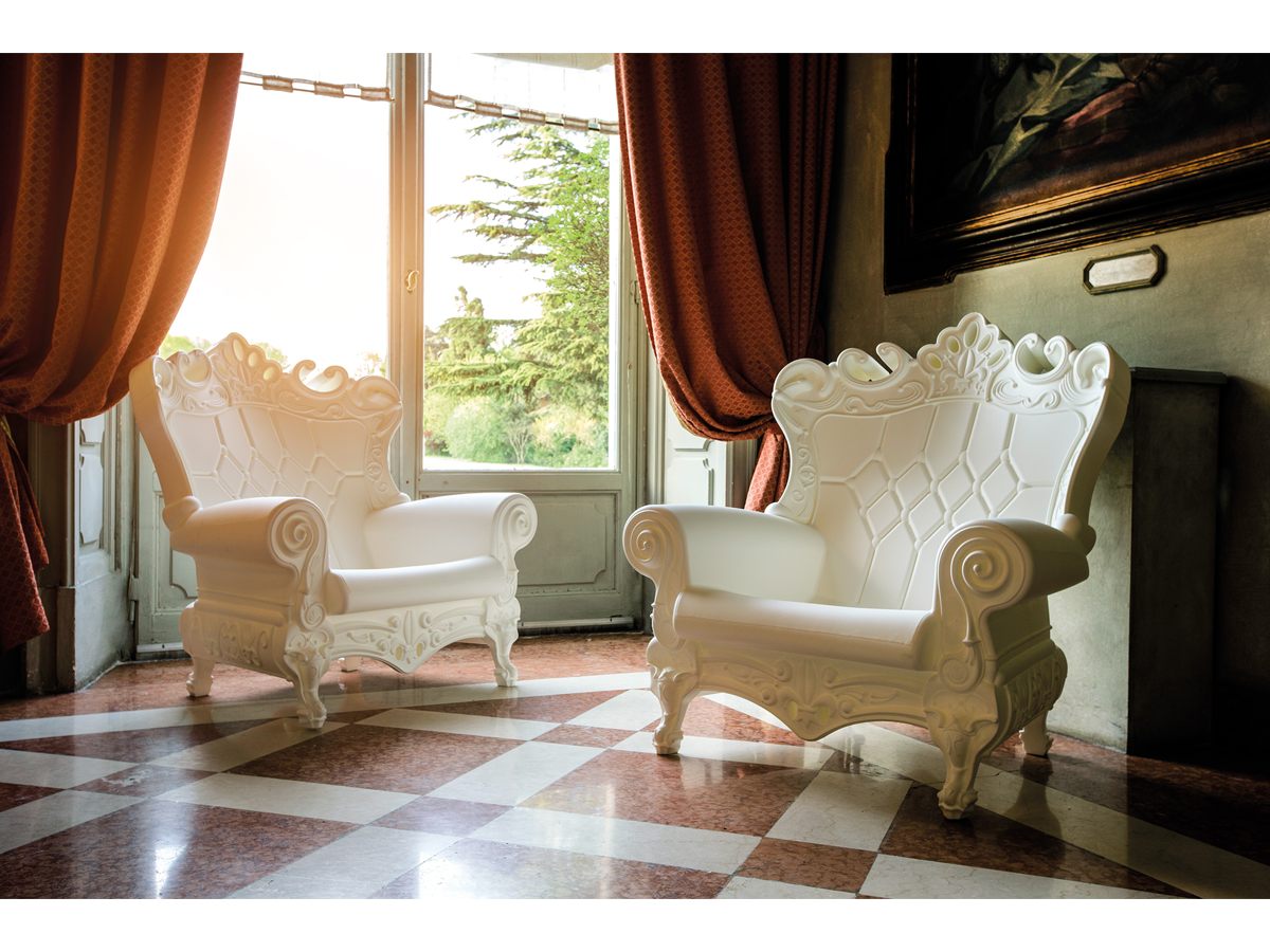 Der Queen of Love-Sessel ist Teil der ursprünglichen Produktlinie Design of Love Collection, die kürzlich von SLIDE vorgestellt wurde und sich durch Details und Oberflächen im Rokoko-Stil auszeichnet. Elegant und elegant, ironisch und verächtlich, aber im Wesentlichen einzigartig und besonders, ist die Königin der Liebe nicht nur ein luxuriöser Sitz im Barockstil, sondern auch ein Gegenstand mit einem unwiderstehlichen Design, das sich jeder Art von Umgebung im Freien und im Innenbereich wie dem Wohnen anpasst Zimmer, Geschäfte, Restaurants und Büros sowie ideal für die Vertragsnutzung.