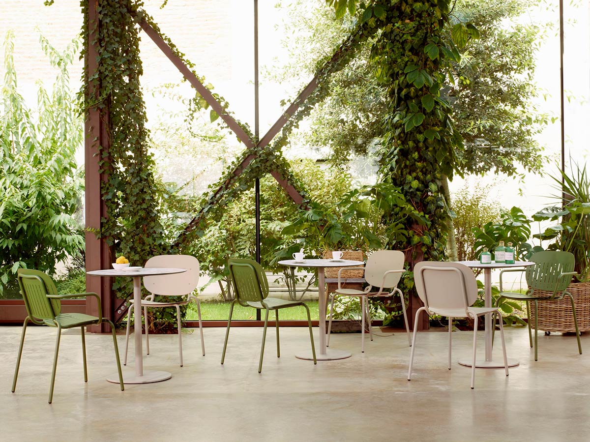 Mit einem leichten Rahmen und vier verschiedenen Schalen, die jeweils aus unterschiedlichen Materialien und Texturen bestehen, ist Si-Si in der Lage, sich an ganz unterschiedliche Kontexte anzupassen und Funktionalität und Stil in jeder Situation zu bieten.