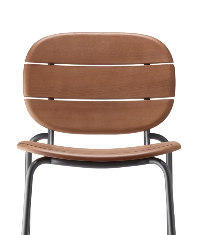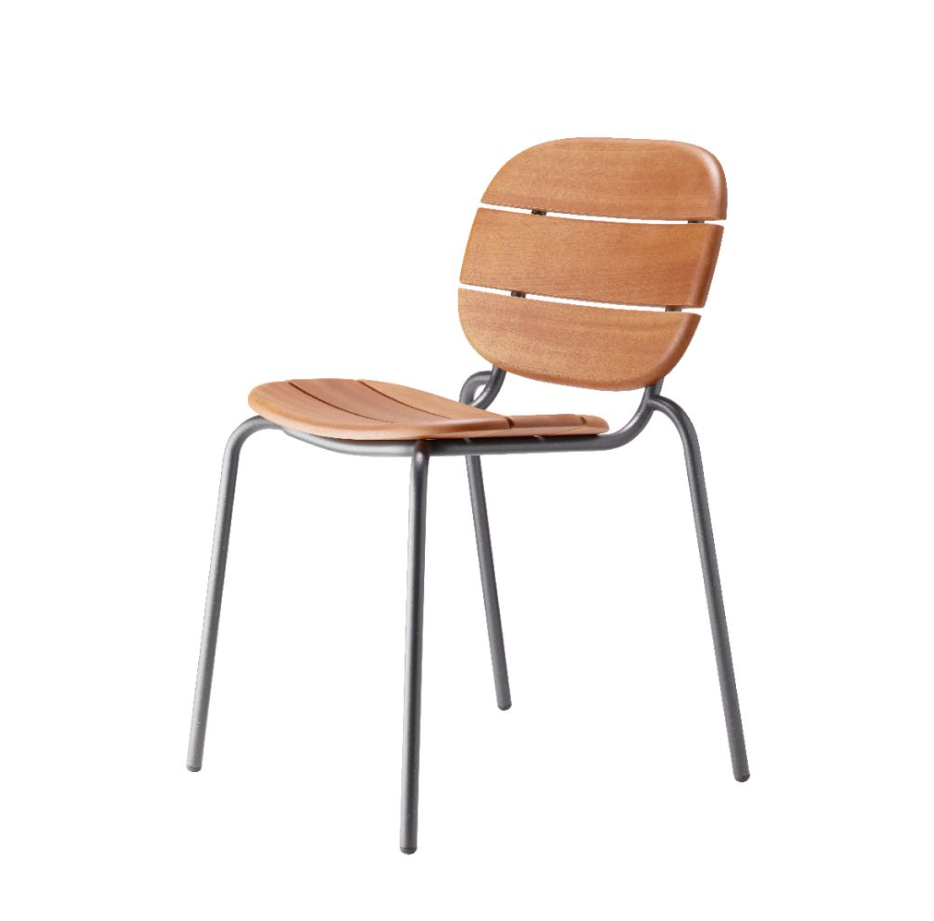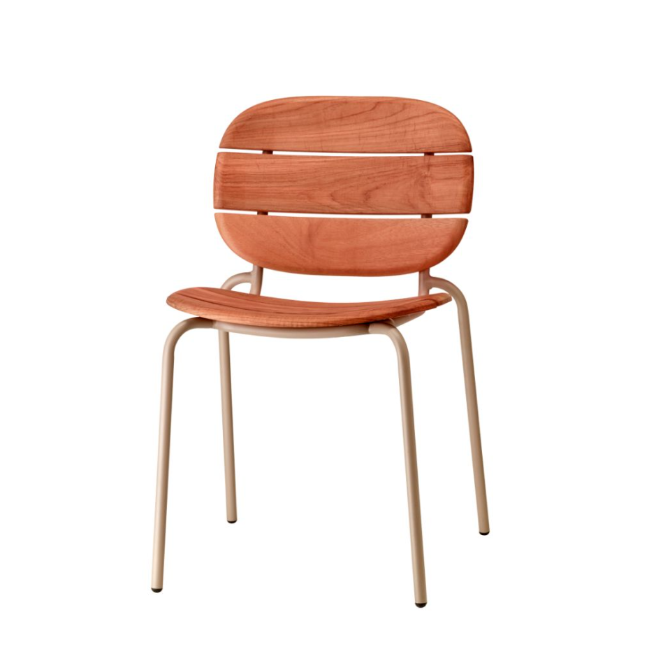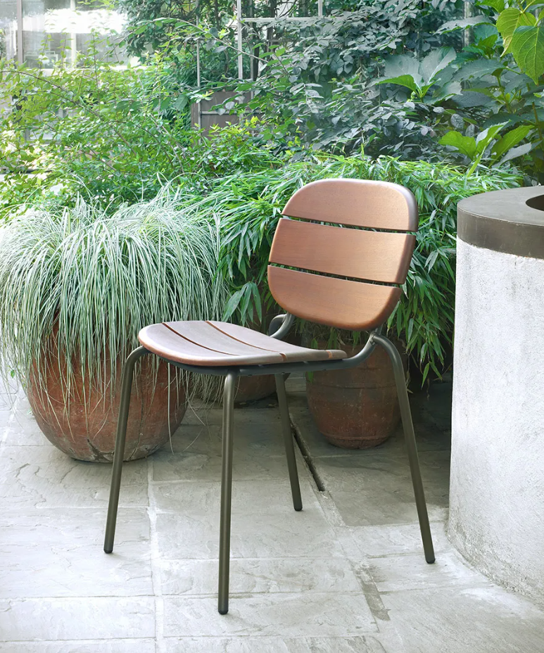Die Stuhlversion der Si‑Si Wood -Kollektion kombiniert die formale Strenge des Industriedesigns mit der natürlichen Wärme von Holz.